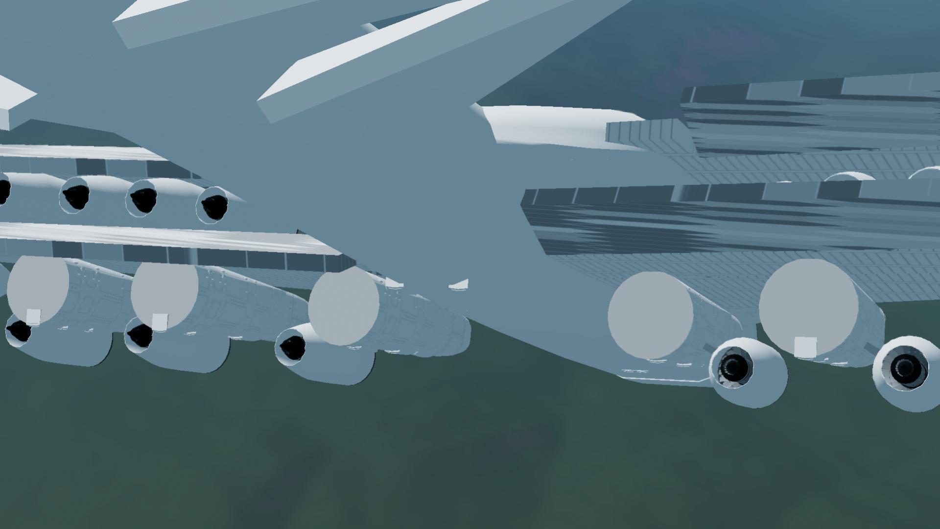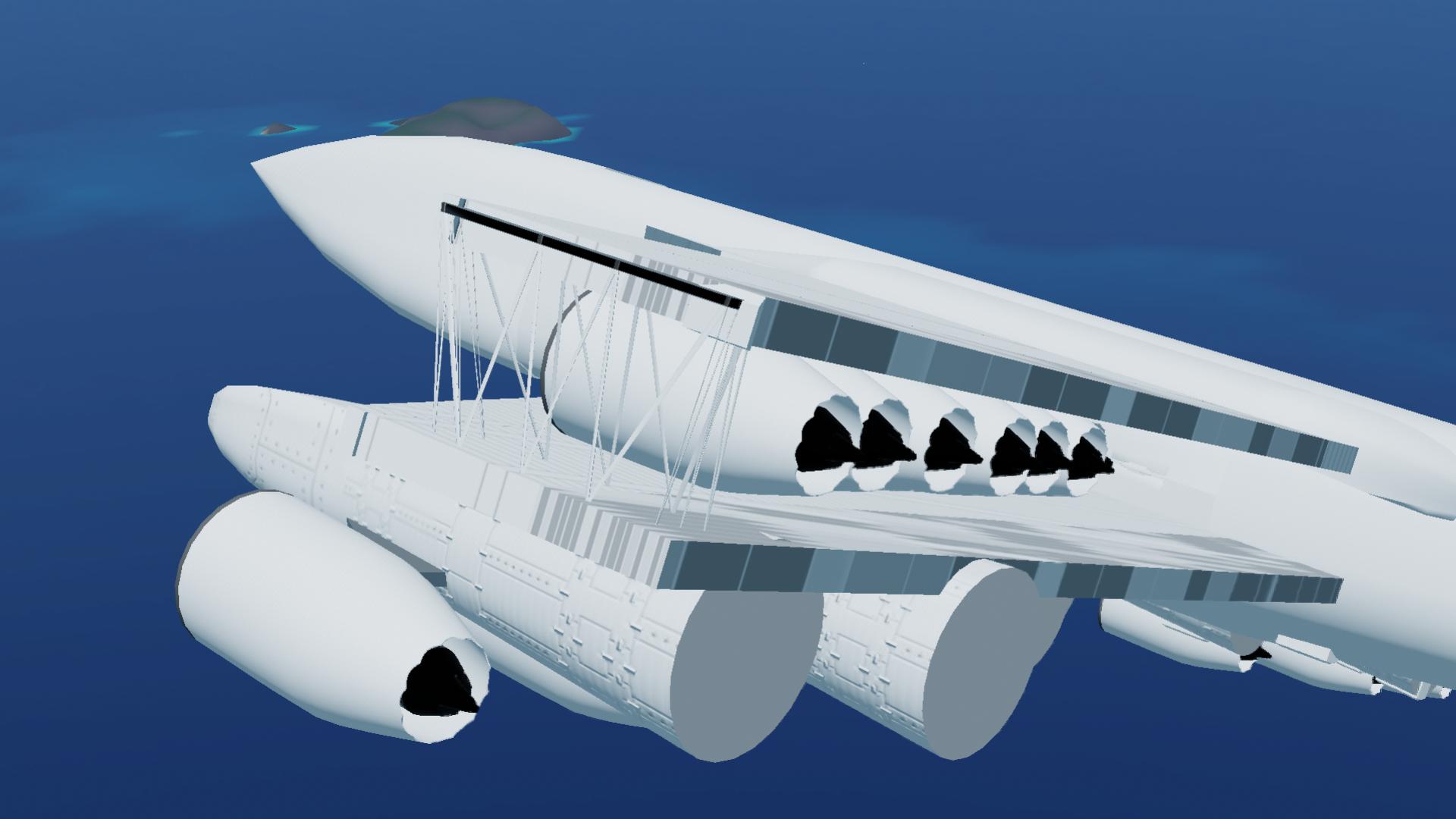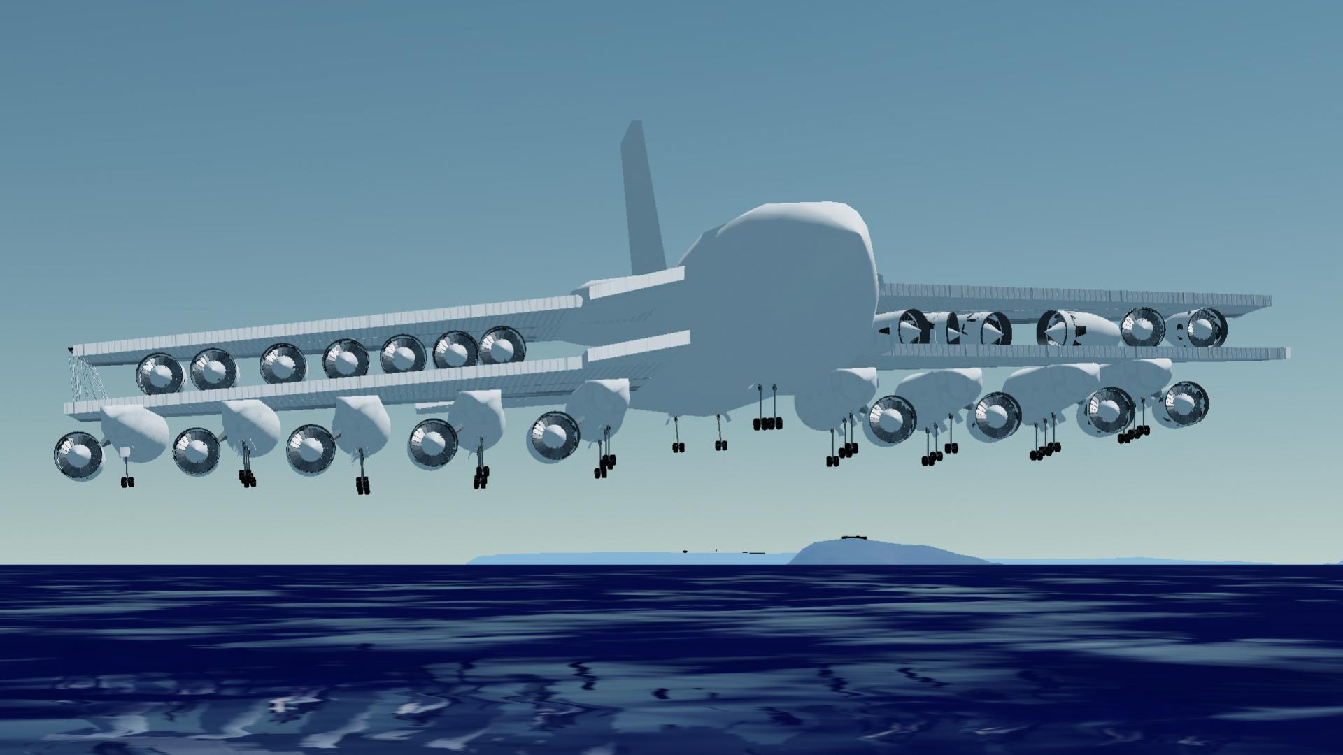 Even though it's heavy, You can Float like a Boat when you Emergency land on water, Due to the Floaters beneath Wing 1, Even it it As a Ton of Jet fuel. Despite the Absurd Engine count, It's highly Efficient and you can go to the Other Island Westward (Desert or ALI base) And the Fuel is 95 percent-ish