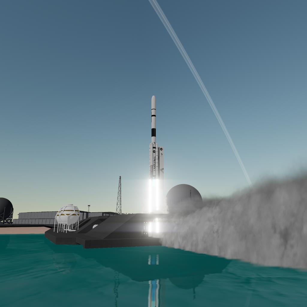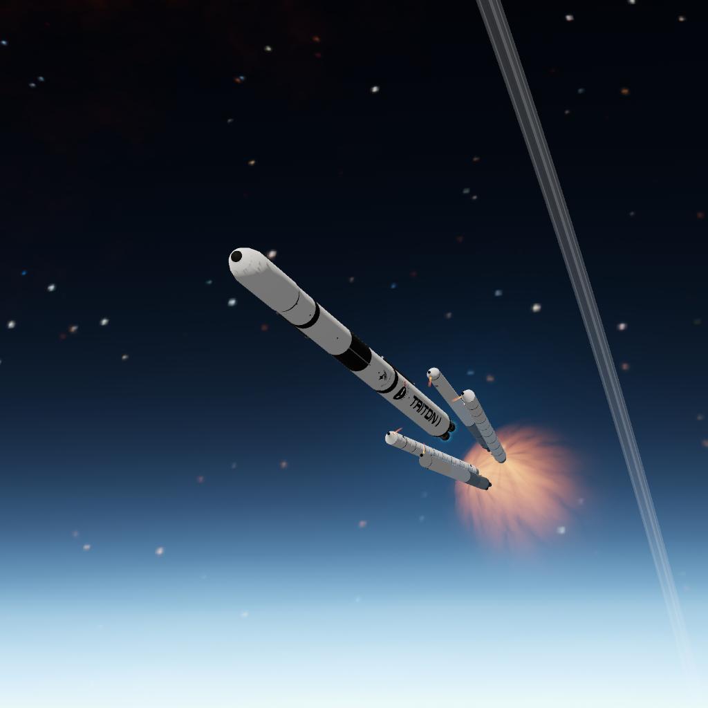 The I-B version includes two SRB-8Ts and two LRB-Config2s. The core of Triton has 5 FFSC Posiden Is, which drink Methane and LOX, while its boosters uses Kerethine and LOX, or just solid fuel. Under this configuration, Triton I-B is capable of lifting 75 tonnes to LEO, allowing extensive missions to be achieved.