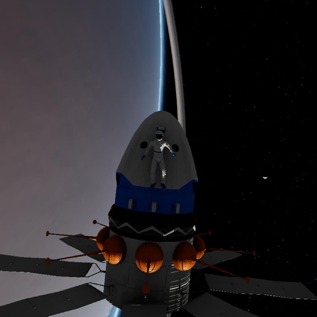 Successor to the Eagle-2 spacecraft, Eagle-3 serves ar a multi-purpose rocket, with enough fuel to operate both outside and inside it's homeplanet's sphere of influence, this rocket comes in 2 types: manned and unmanned; one for astronauts and operate only inside the home planet's SOI, and the other meant for not only home planet only mission but deep space ones as well.