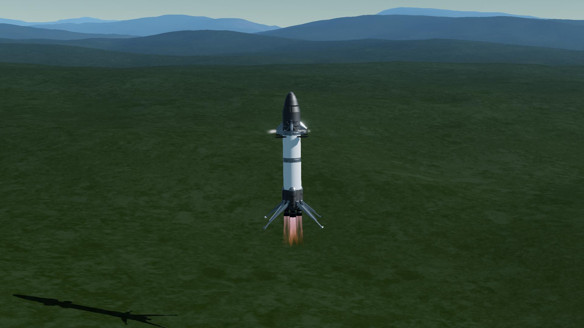 Slider one 100% is the bay door and slider 2 -100% is grid fins, fire the engines around 5-7,000 at 40%-60% throtle and continue to raise the throtle slowly below 4,000.