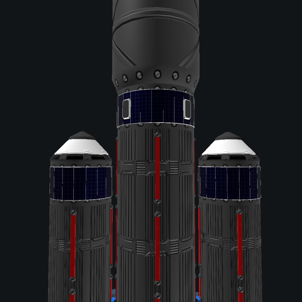 this has been my flagship rocket so to speak when i just want to explore. well balanced in thrust while sporting unlimited range, and the command pod comes with air brakes, a 22 drood capacity, and is filled with tinkered droods if you want to have fun.it has unlimited mono, and the orbital maneuver thrusters are rcs.once you kick the core,everything has an action group.
