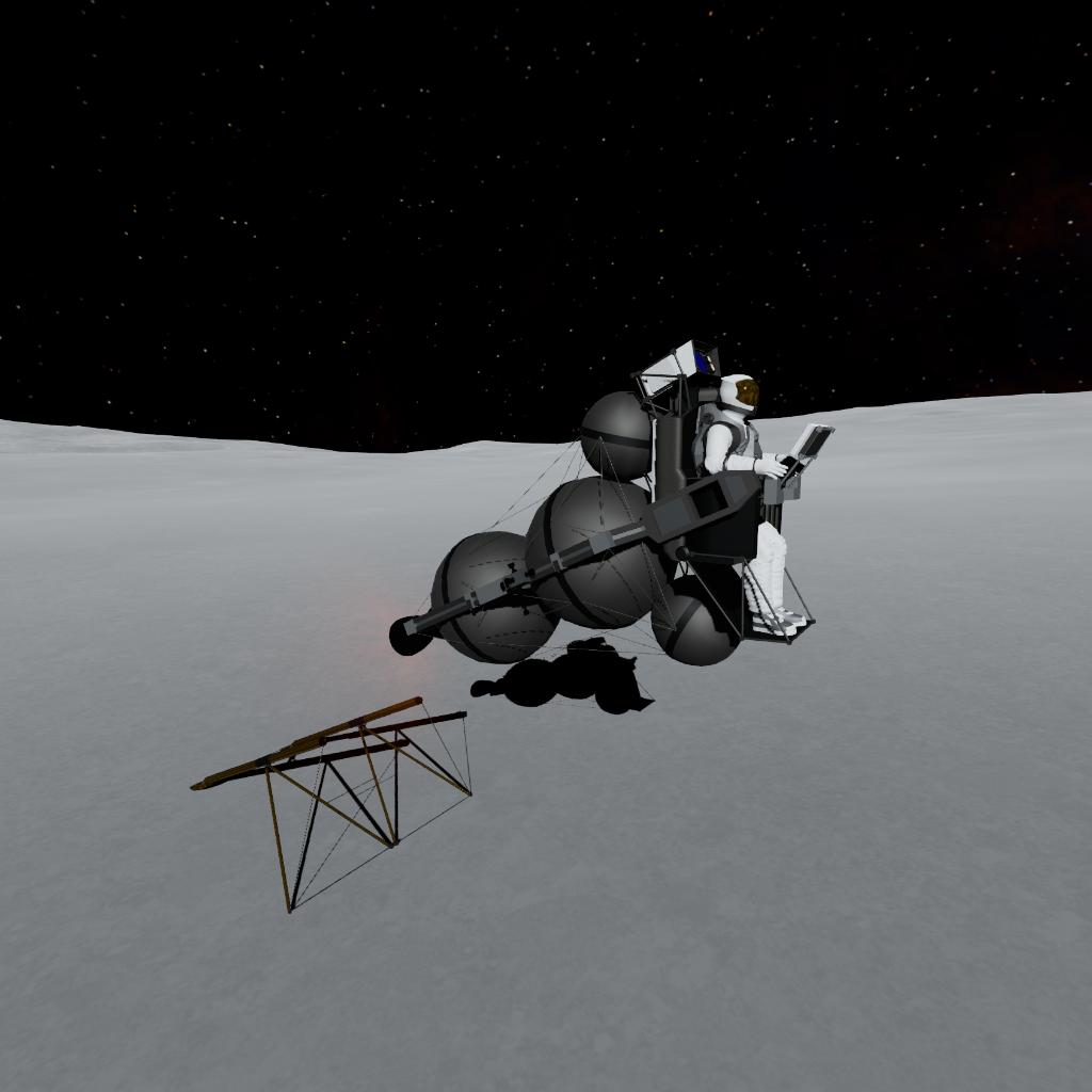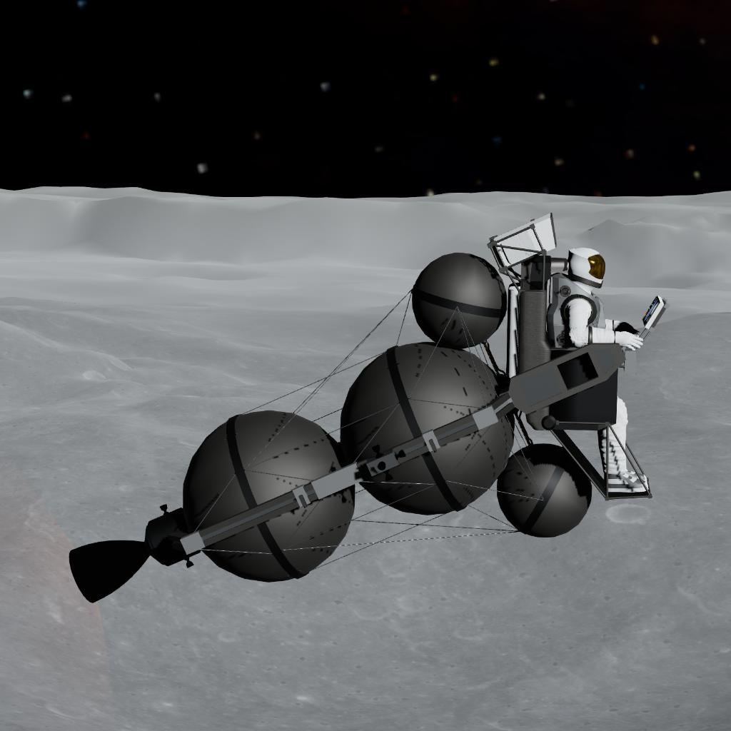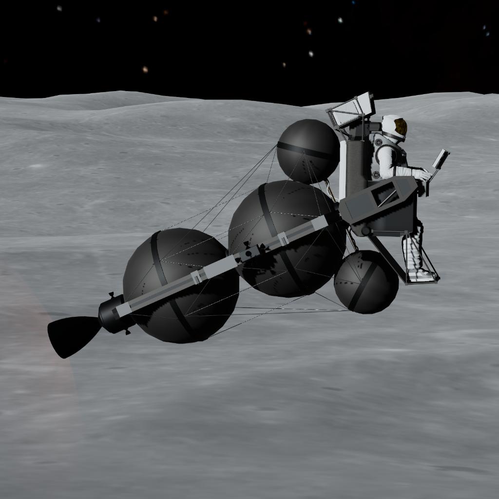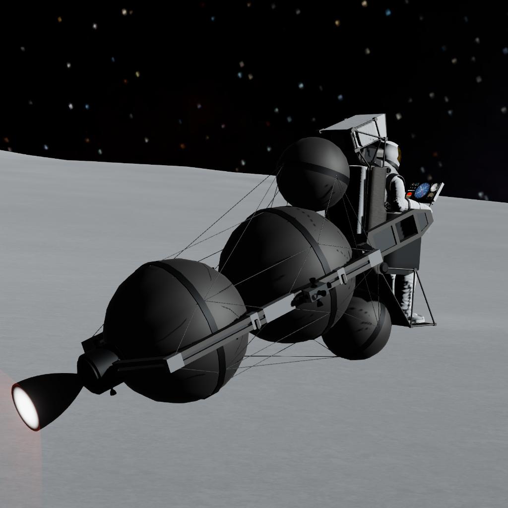 EN: This is the 1964 General Dynamics "Lunar Escape Device (LED)" concept. If the Lunar Module crashed, astronauts were supposed to cannibalize it, strap the remaining fuel tanks and engine together into this open-air "space broomstick", and manually fly back to lunar orbit!