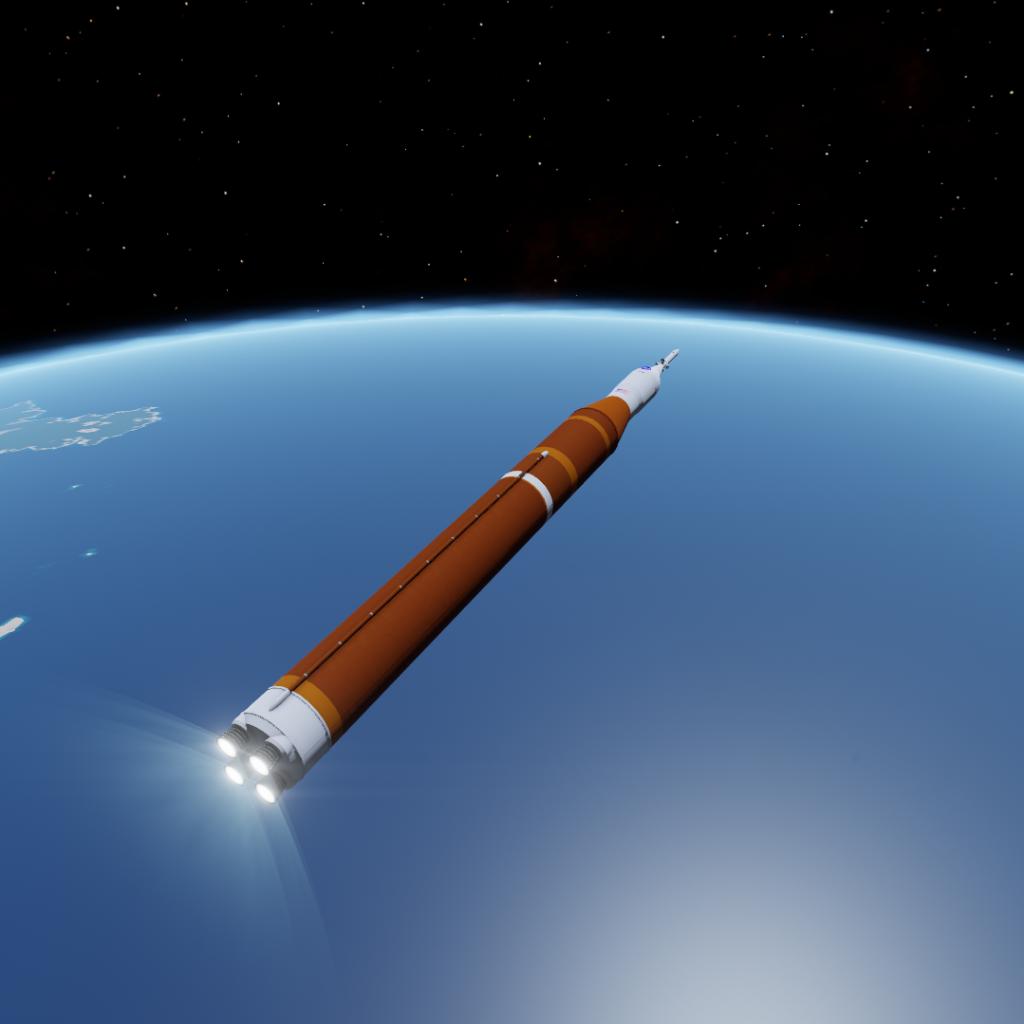 It is powerd by a Boeing core stage, which uses four RS 25 spaceshuttle engines and is derived from the spaceshuttle External Tank.