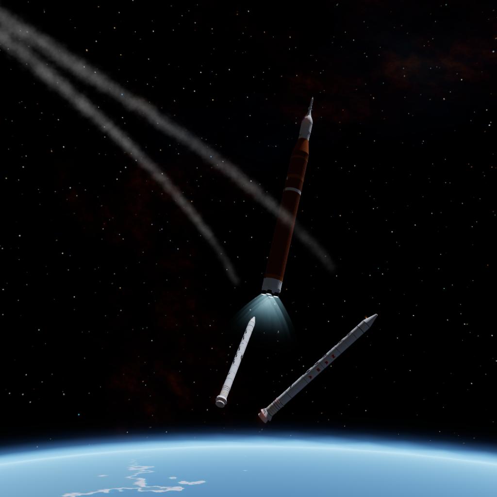The SRBs are five segment versions of the four segment spaceshuttle SRBs.