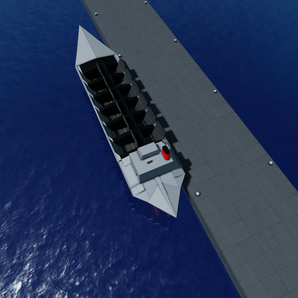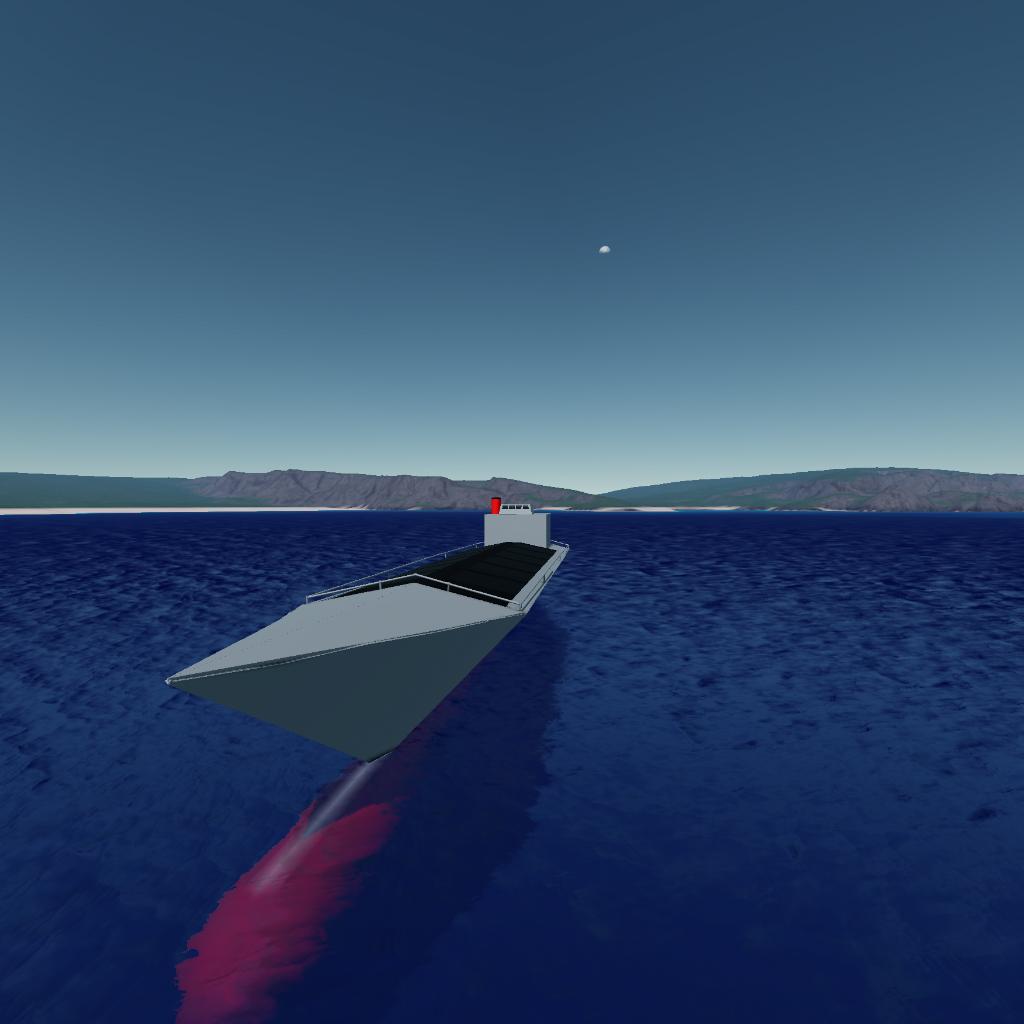 This craft is a 200 part version of the soon to be "Oil Tanker" so this can actually be sped up to 10x speed without loosing FPS or making the boat bounce. This also fetures a simple interor that you can operate in first person. The door is opened from the outside, there is an invisible switch.