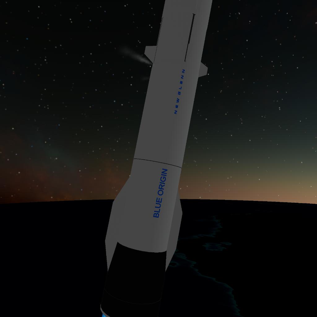 Ракета New Glenn от компании Blue Origin. Ракета очень мощная, способна доставлять большой вес полезной нагрузки (даже при посадке 1 ступени) на НОО, но, я также считаю что на ней можно летать на Brigo и на Luna. У ракеты очень реалистичные метановые двигатели BE-4 и криогенные BE-3U. 1 ступень очень легко можно посадить с 20-25% топлива, но я также смог посвдить с 15% (можно как и в океан, так и на землю. В обтекателе есть простенький спутник.
