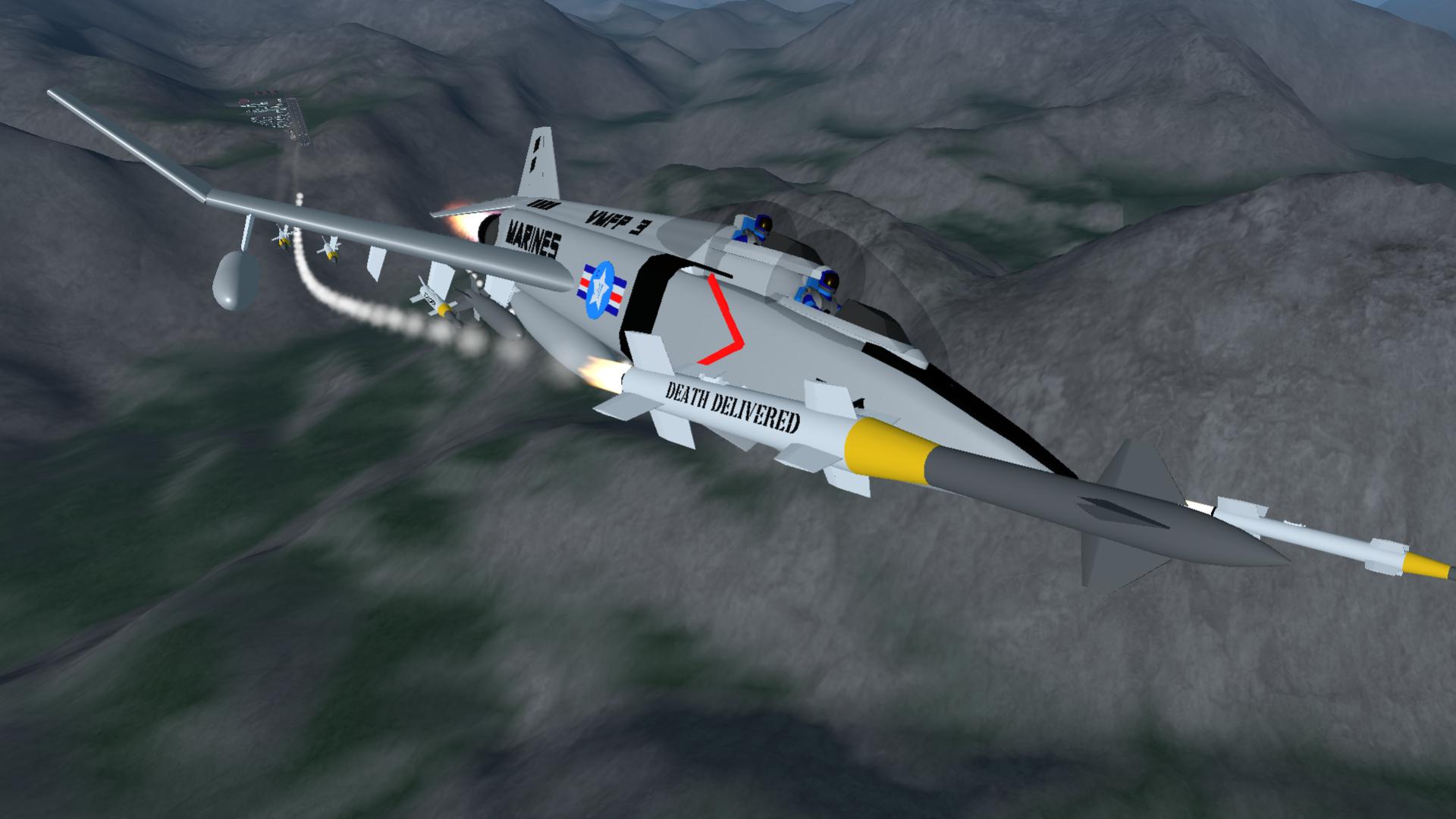 The F-4 Phantom is full of armanent. This is my very detailed craft that contains 286 part counts! just look at its bombs, rockets, and missles. The activation groups is almost full, most of them are weapons. Y'all know about my CL-1201 small but very high accurate design with a missing things so i was actually creating a F-4 Phantom for ANYONE who could build a fully functional (like it had a ability to take off and land verticaly and launch 22 F-4 fighters),full scale and version which is BIG. So idk when will i start my CL-1201 progress...... coz i have so many ideas that i don't know what ideas i'm building first like tye "Boeing Pelican" aircraft carriers, and the HMS Rodney battleship which is my fave battleship from BOW (Battle of warships).
