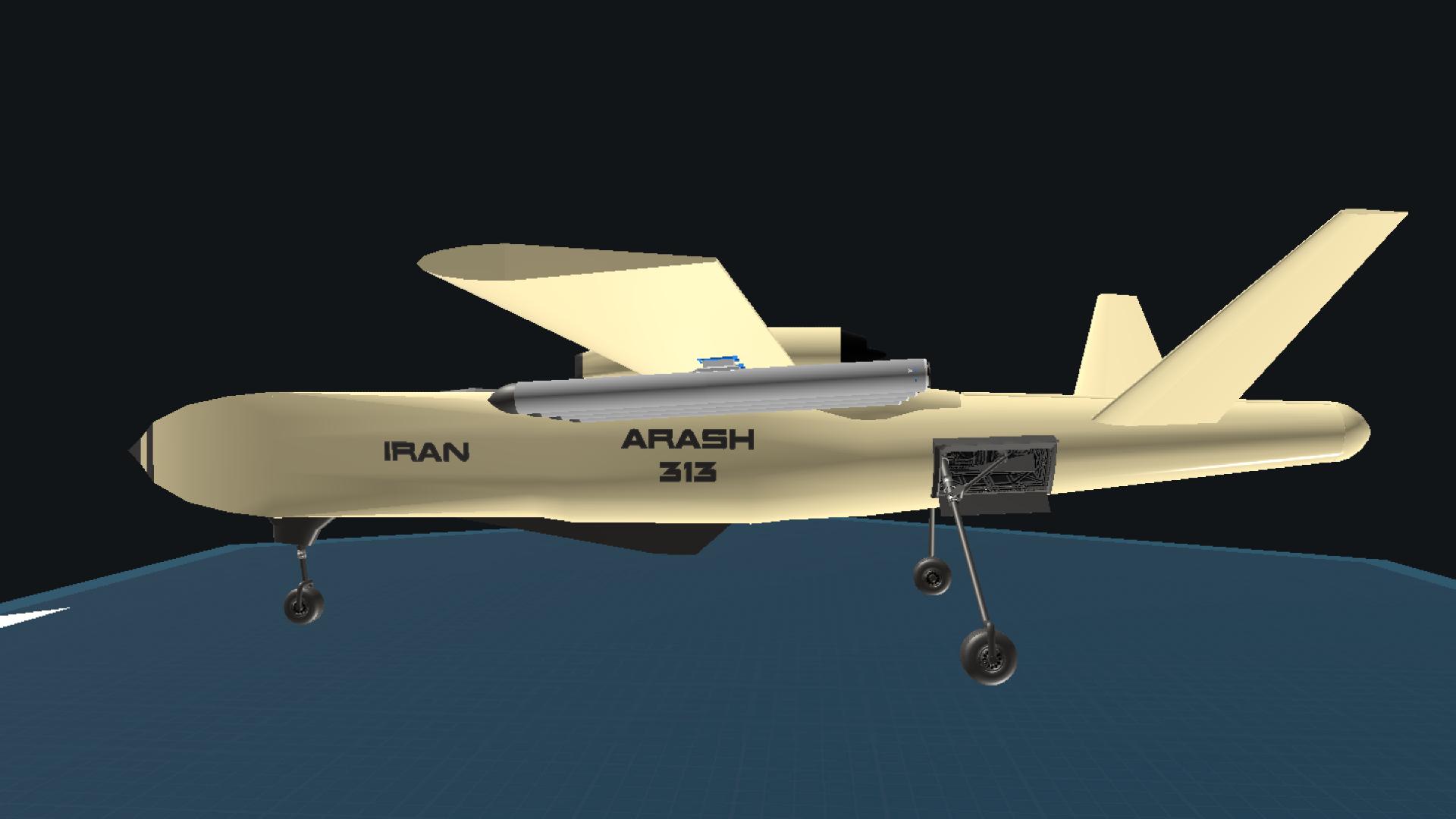 The Arash 313 military drone is a fictional UAV and does not exist in reality; it is a creation of my imagination. This Iranian drone is equipped with 8 air-to-air missiles.