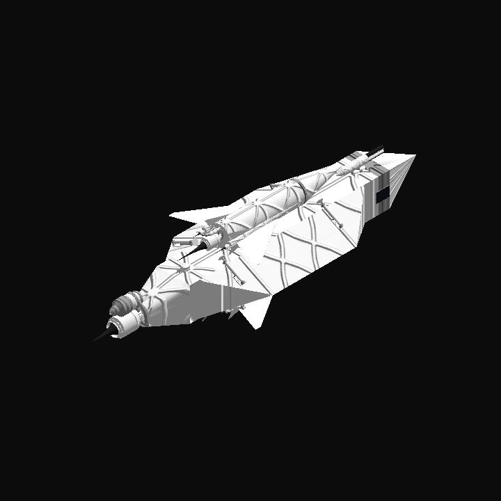 Armed with 2 Guided medium missiles, 2 tri lance rifle CIWS turrets and 2 dual barelled, dual weapon turrets, making it a rather armed platform for the cult. This ship is widely used by the cult due to its popularity, it also makes use of advanced AI systems made by the cults robotics department, allowing the ship to only have a crew of 1 which benefits the cult majorly due to it having a handful of members.