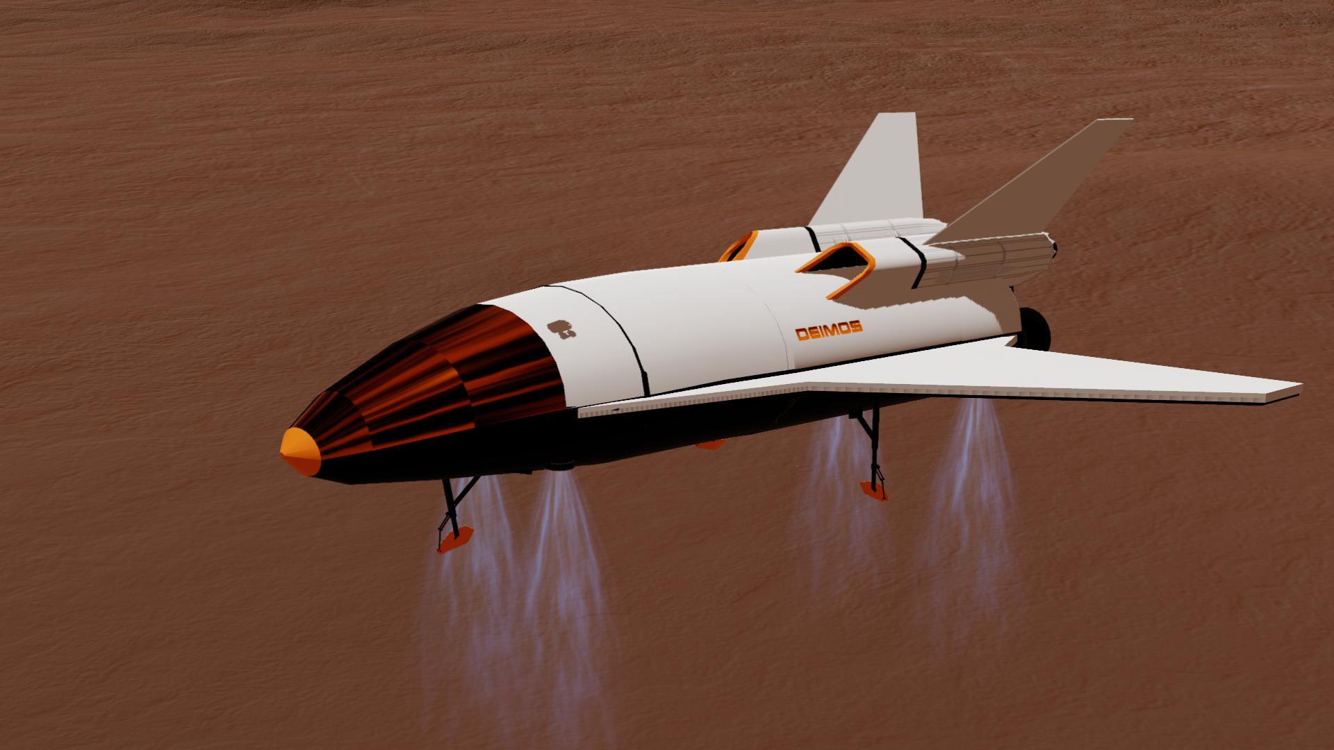 This is a versatile multi-purpose spacecraft with a small cargo bay with floor clamps, vtol thrusters for vertical take-off and a crew compartment with a capasity of two astronauts.