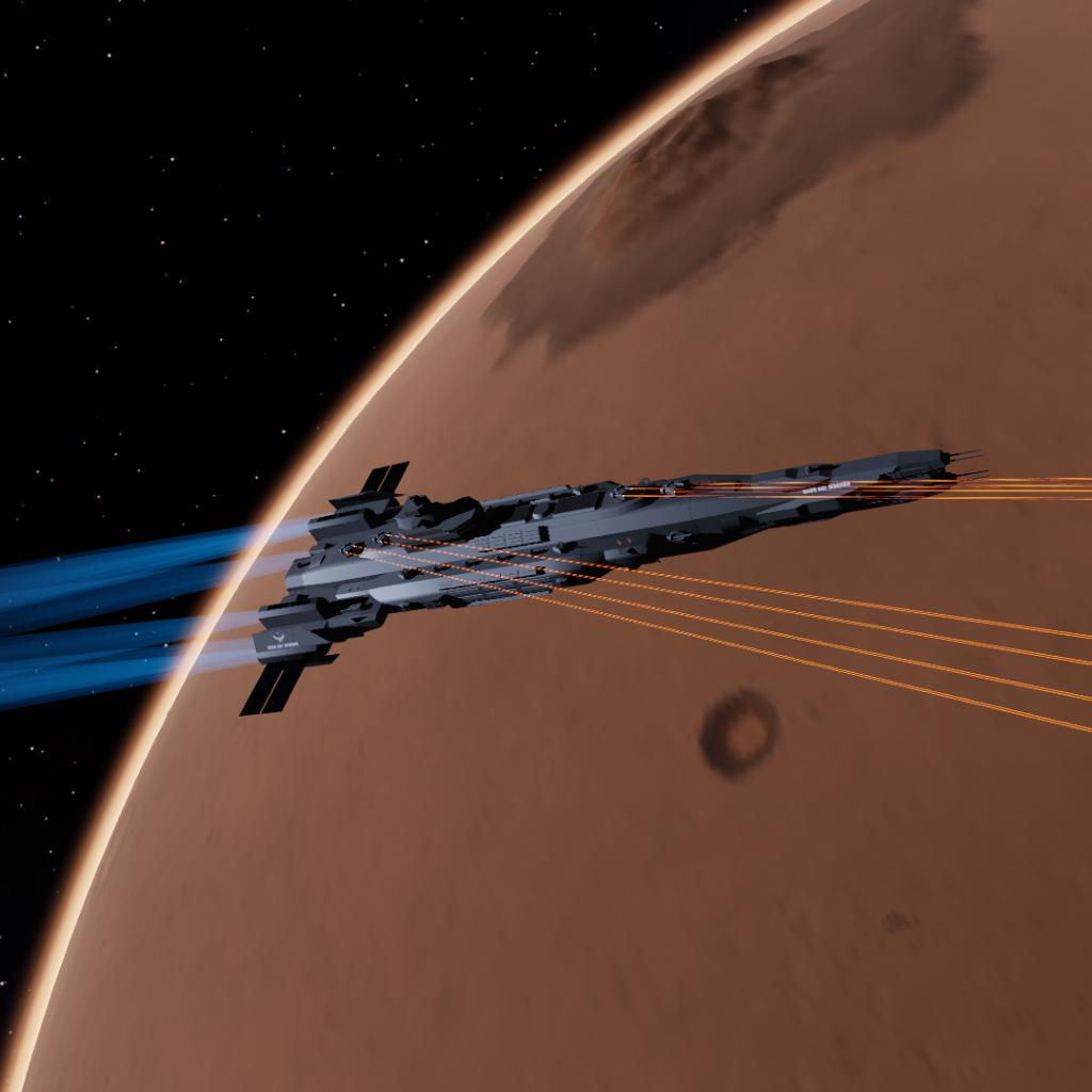 The heat sink array will automatically deploy when the spaceship is outside the current planet's atmosphere and higher than 100m. When the turret rotates, the heat sink array that partially blocks the firing range will automatically retract.