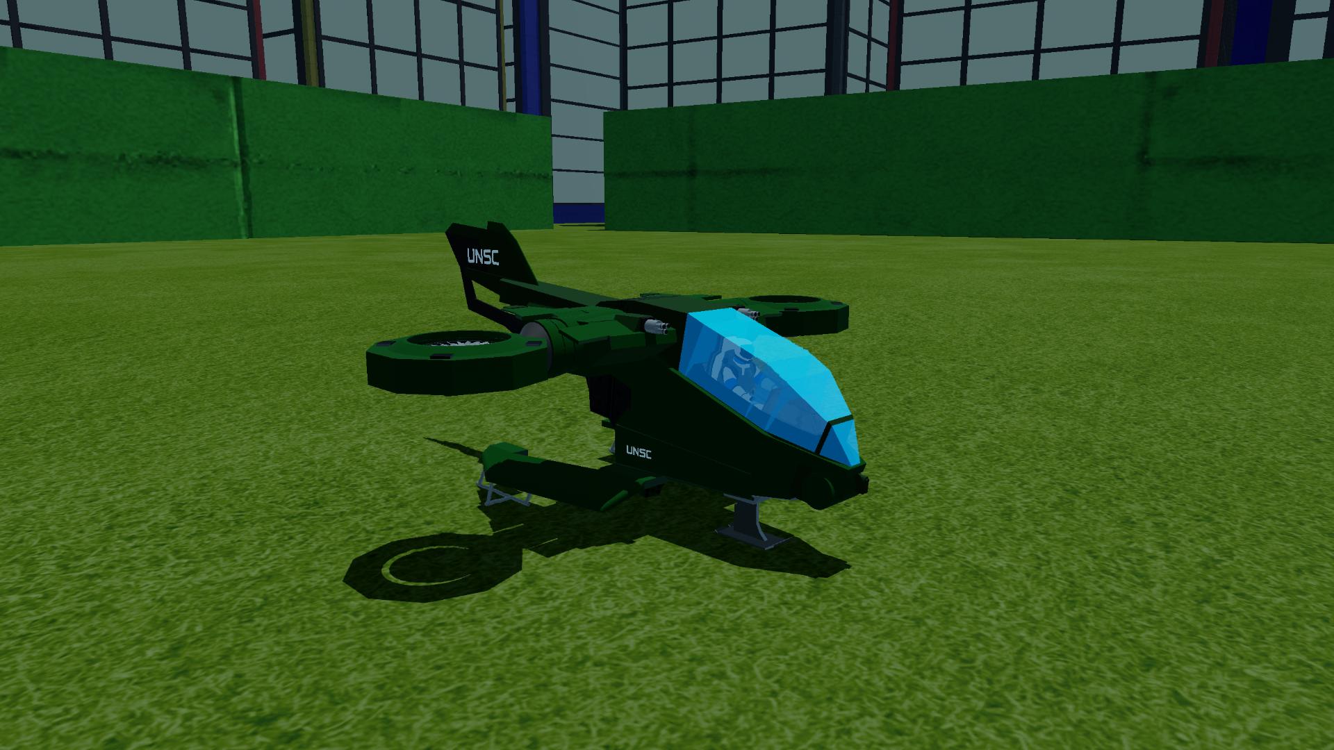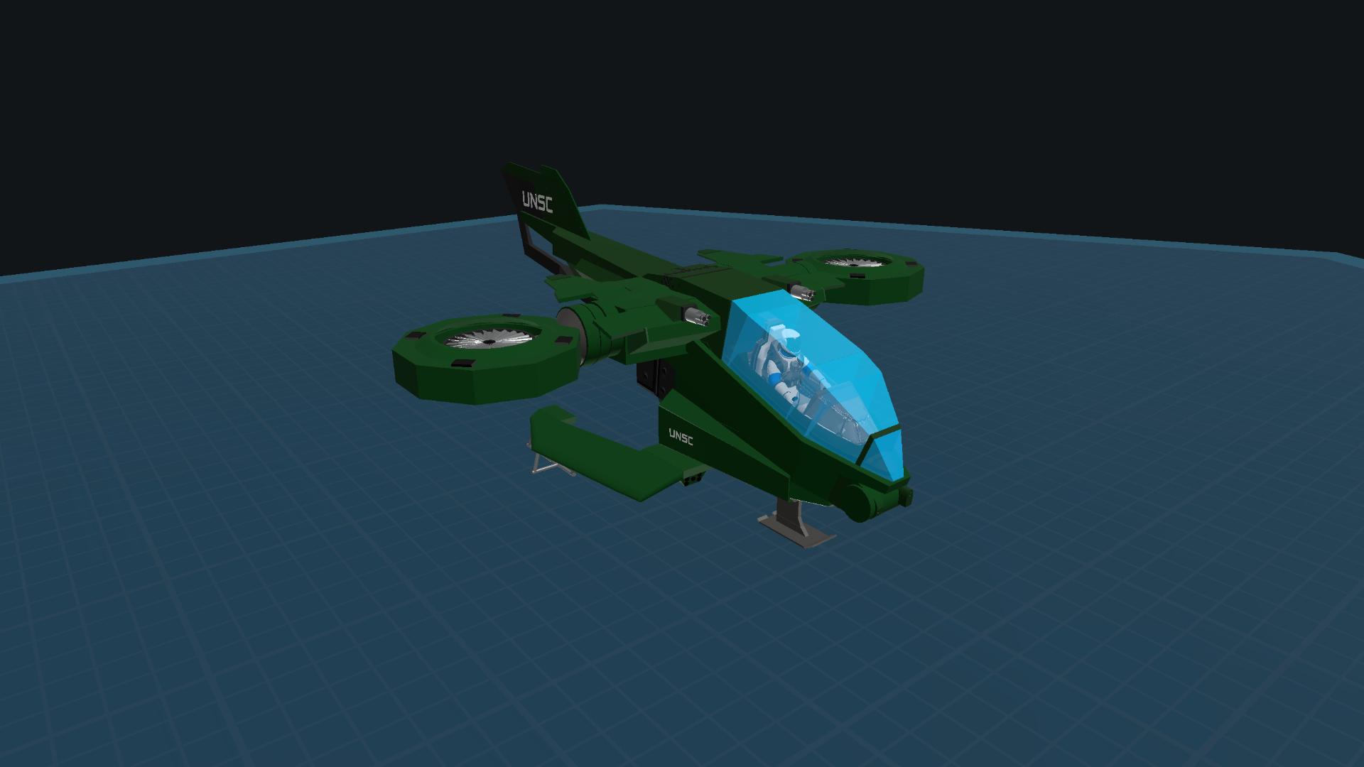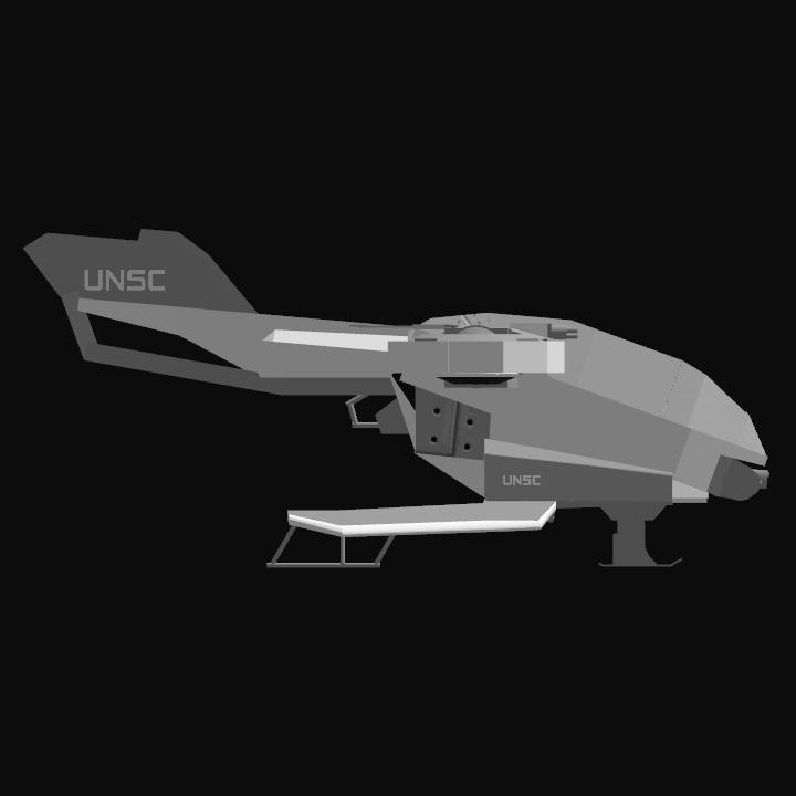 The AV-14 Hornet is a versatile, heavily armed aerial vehicle featured prominently in the Halo universe. This VTOL (Vertical Take-Off and Landing) aircraft is primarily utilized by the United Nations Space Command (UNSC) for both troop transport and close air support roles. Its sturdy, angular frame is designed for durability and agility in combat scenarios, ensuring reliability in high-intensity battles.