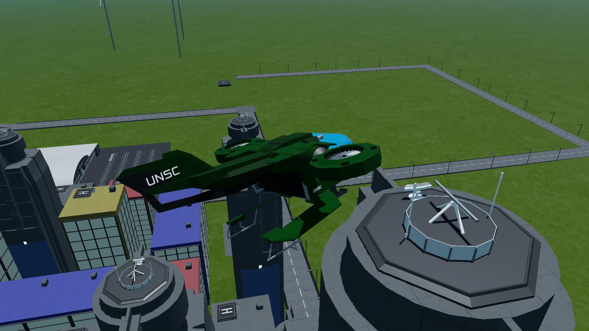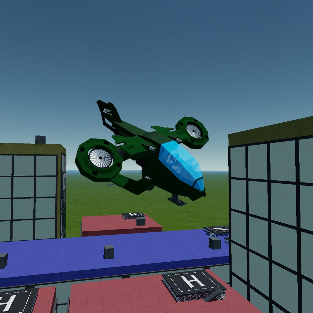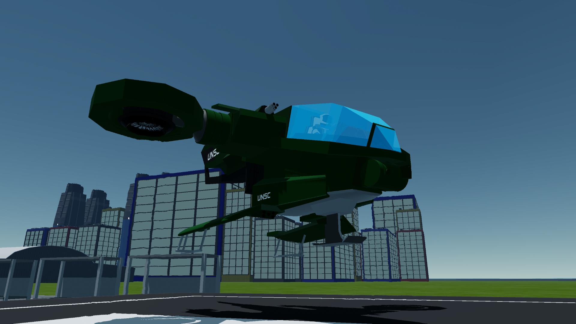 The AV-14 Hornet is a versatile, heavily armed aerial vehicle featured prominently in the Halo universe. This VTOL (Vertical Take-Off and Landing) aircraft is primarily utilized by the United Nations Space Command (UNSC) for both troop transport and close air support roles. Its sturdy, angular frame is designed for durability and agility in combat scenarios, ensuring reliability in high-intensity battles.