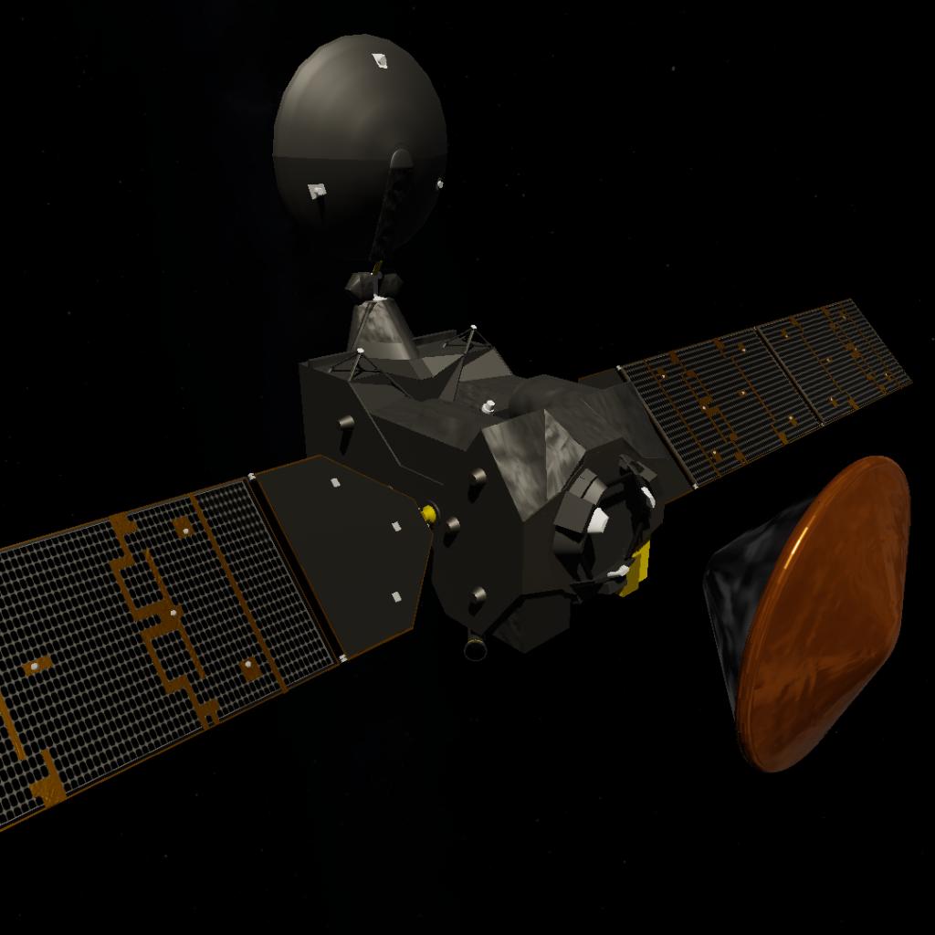 The ExoMars TGO (Trace Gas Orbiter) is a real spacecraft launched in 2016 on board of a Proton-M/Briz-M rocket from Baikonur to Mars.
