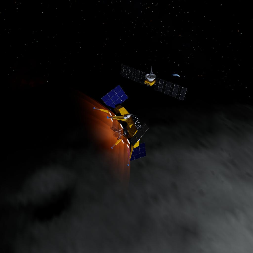 This heavy fictional rocket is designed to launch a sattilite and a rover to luna. Both is also designed for a closer look, take samples, learn and unlocking the mysteries of LUNA.