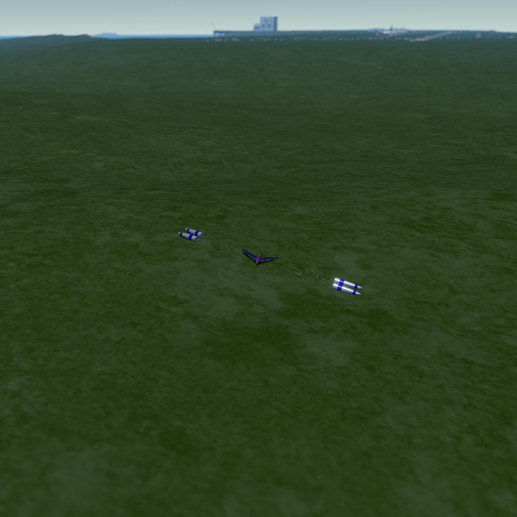 A Prototype Rocket Powered Parasite Fighter or P.R.P.P.F for short, the L-54 has a little over 5 minutes of effective flight time after departing from the host aircraft, with the engine producing 50kN of thrust even the sharpest manoeuvers wont bleed too much speed. Disclaimer: you are not intended to dock the aircraft back to the host aircraft, please use the on board parachutes to slowly lower the plane to the ground. Any injuries from the extremely volatile fuel are not to be compensated. (P.S this is not the Rocket I’m working on, this is just an old craft I made and touched up slightly to release, still not fully complete but that’s why it’s a prototype, feel free to modify this in any way or add this to your own crafts, just please give me credit, thanks!)