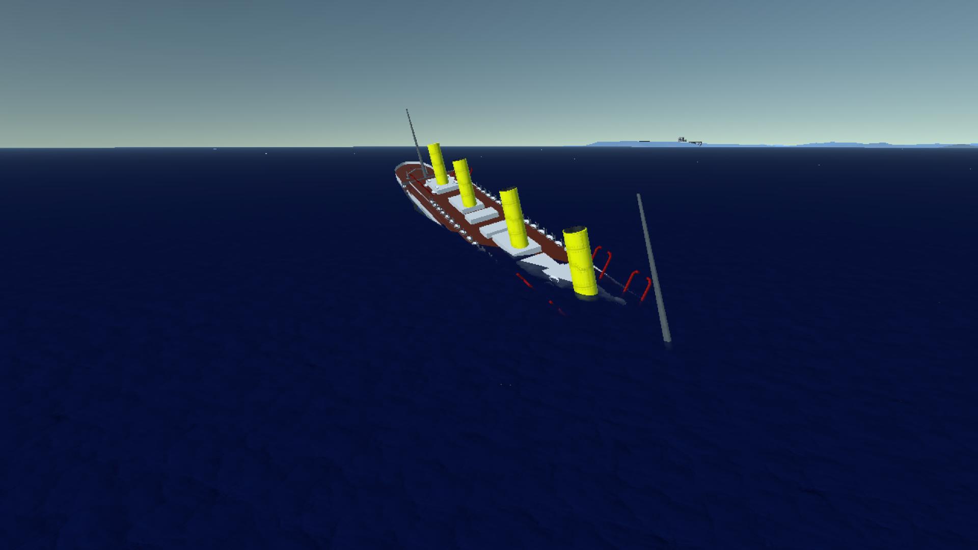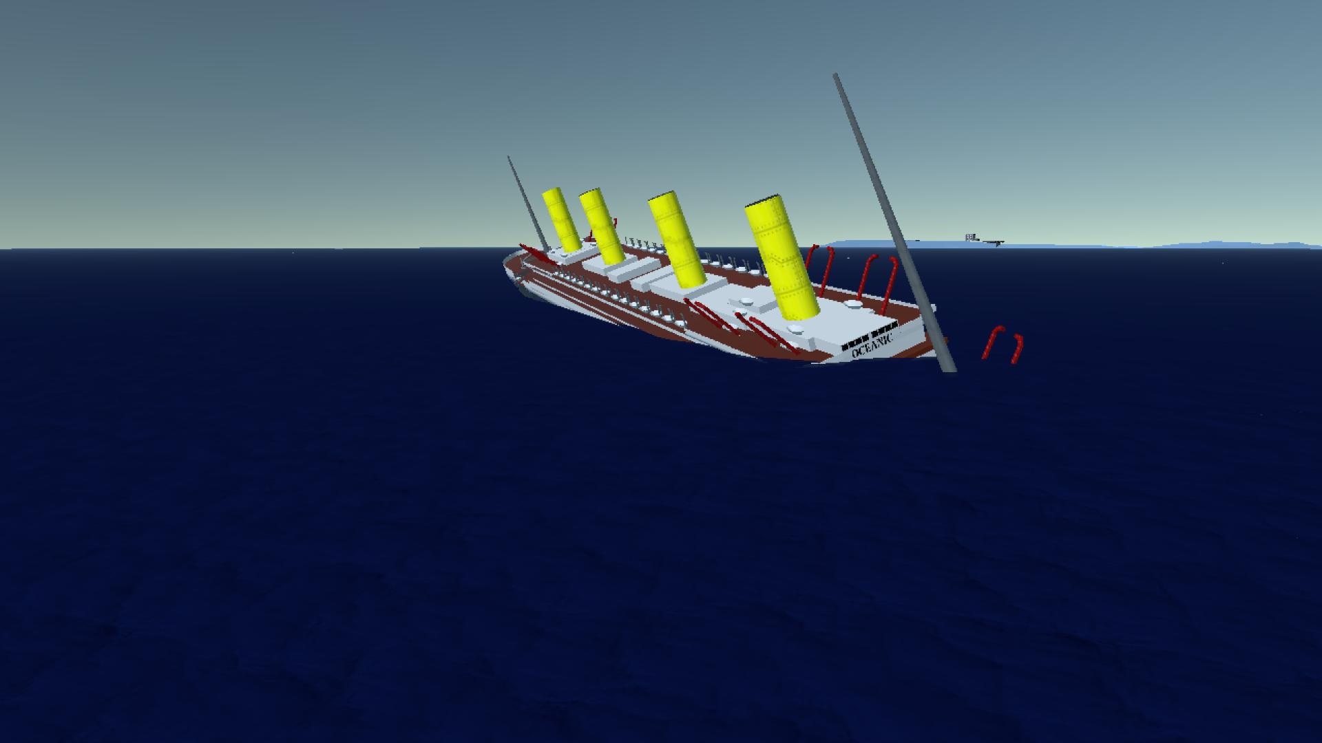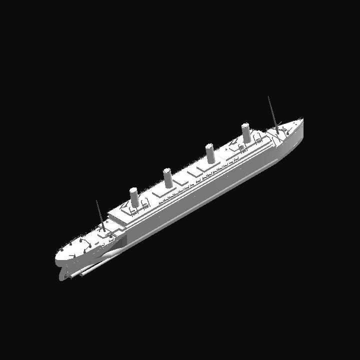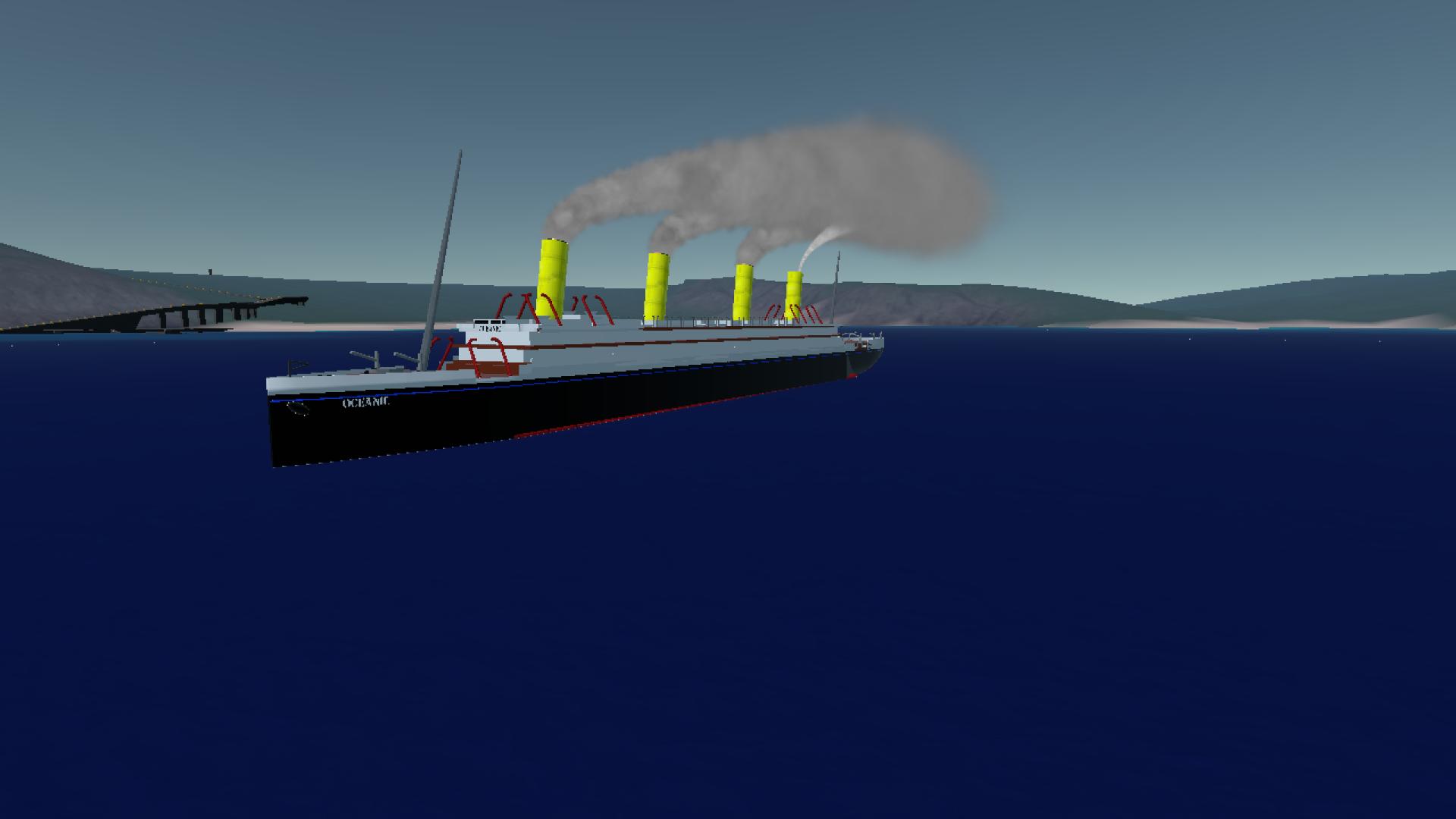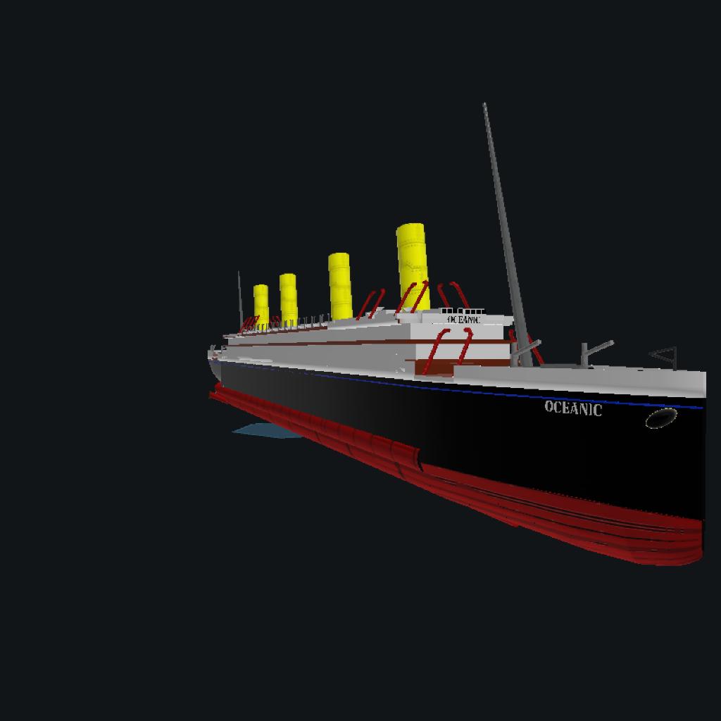 the RMS Oceanic is the lone ship of the Oceanic class passenger freighters, based off the Titan class but with 5 props for faster speed and more cargo cranes, it was sunk off the coast after striking an underwater rock formation