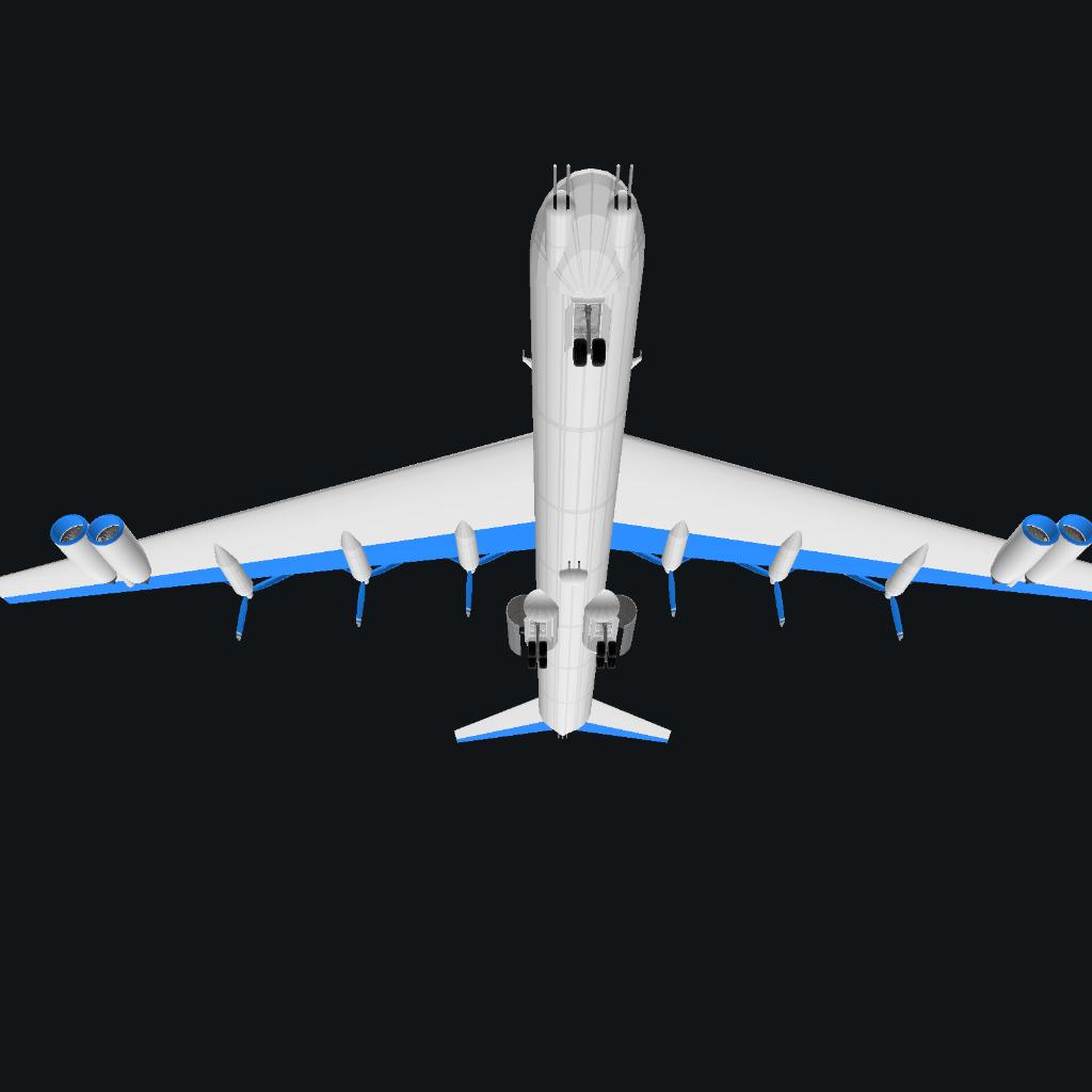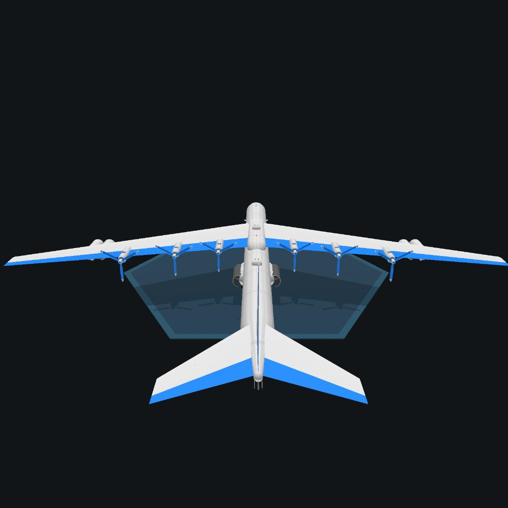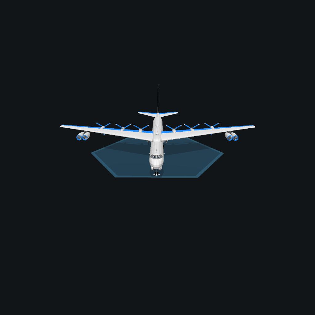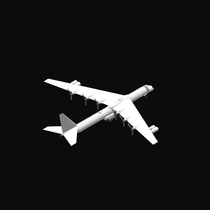 The crazybird phantom works B-38A obliterator II is a long range ultra-heavy bomber designed as the successor to the B-36 peacebreaker, it has a range of 500,000 NM and MTOW of 500,000 kilograms, bomb load of 50,000 kilograms and flight time of 5 days max, it is powered by 6 contra-rotating propellors with crazybird X engines, basically 2 V engines slapped together, it aslo has 4 crazybird XF50 turbofans providing 2,000 pounds of thrust each as they are small engines, the design process was extremely difficult and expensive because of how advanced it was, this is still one of the largest aircraft crazybird phantom works has made in its history since starting in 1928, the aircraft was tested in the 1940s and put into production on december 29th 1949, production ceased in 1976 and retired in 2011, surprisingly late for an airplane like this and I recommend landing at 80 meters per second or 155 knots