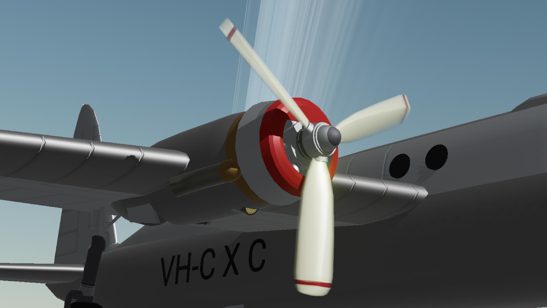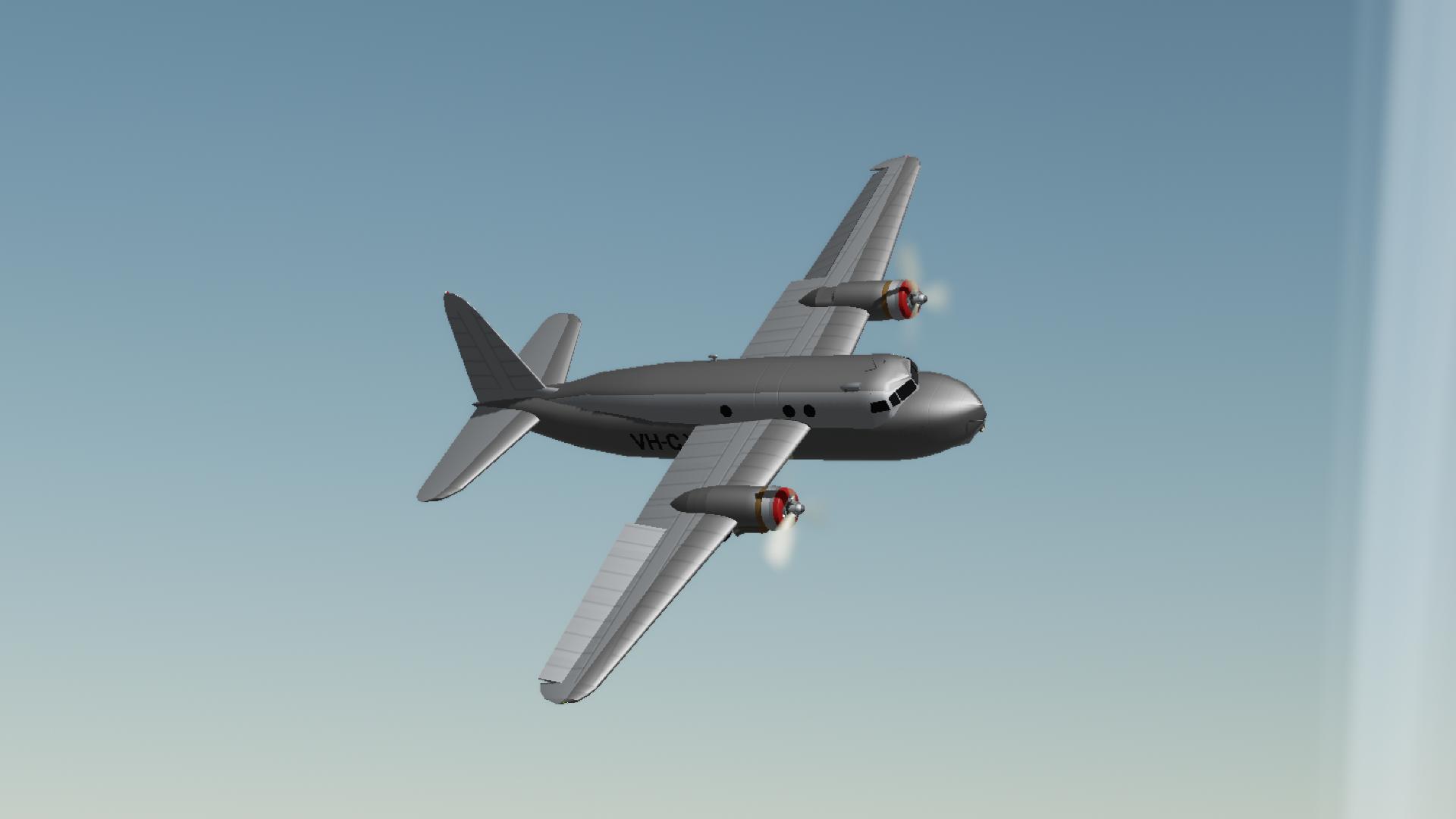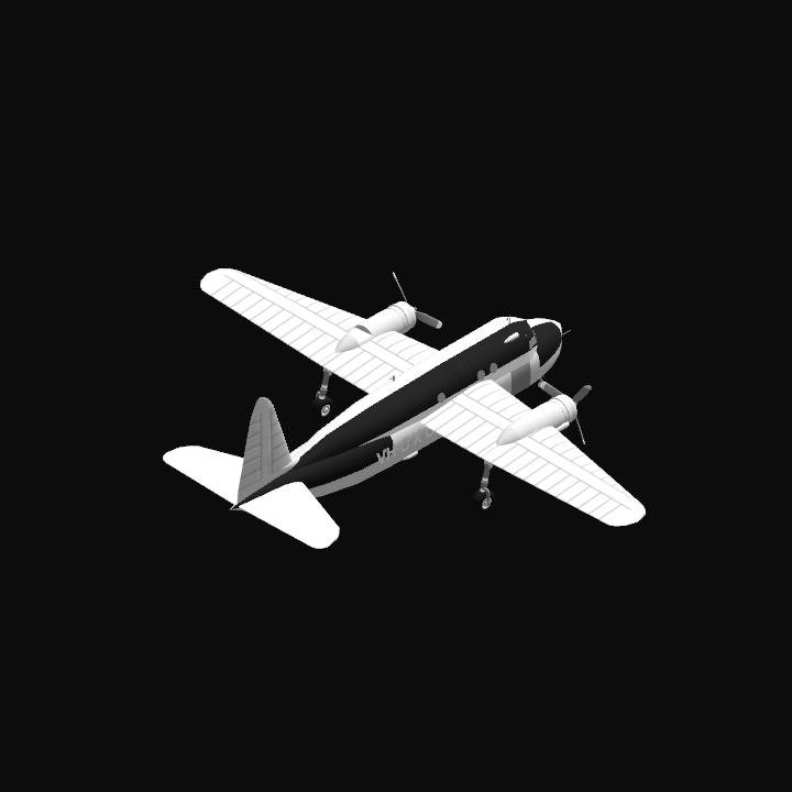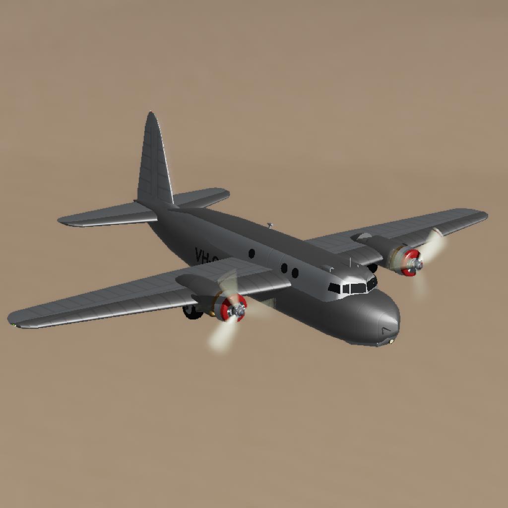 A wartime era propeller aircraft built by Hoplotch Logistics. This model, the DP-5, is a twin engine aircraft usually used for air-mail and small passenger operations.