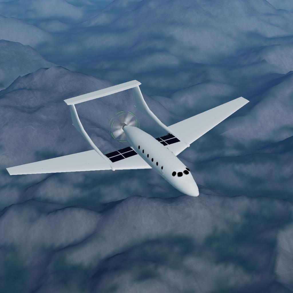 This electric plane was originally designed to work on planets with no oxygen with a built in airlock and pressurised crew compartment. it serves as a flying lab for these missions.