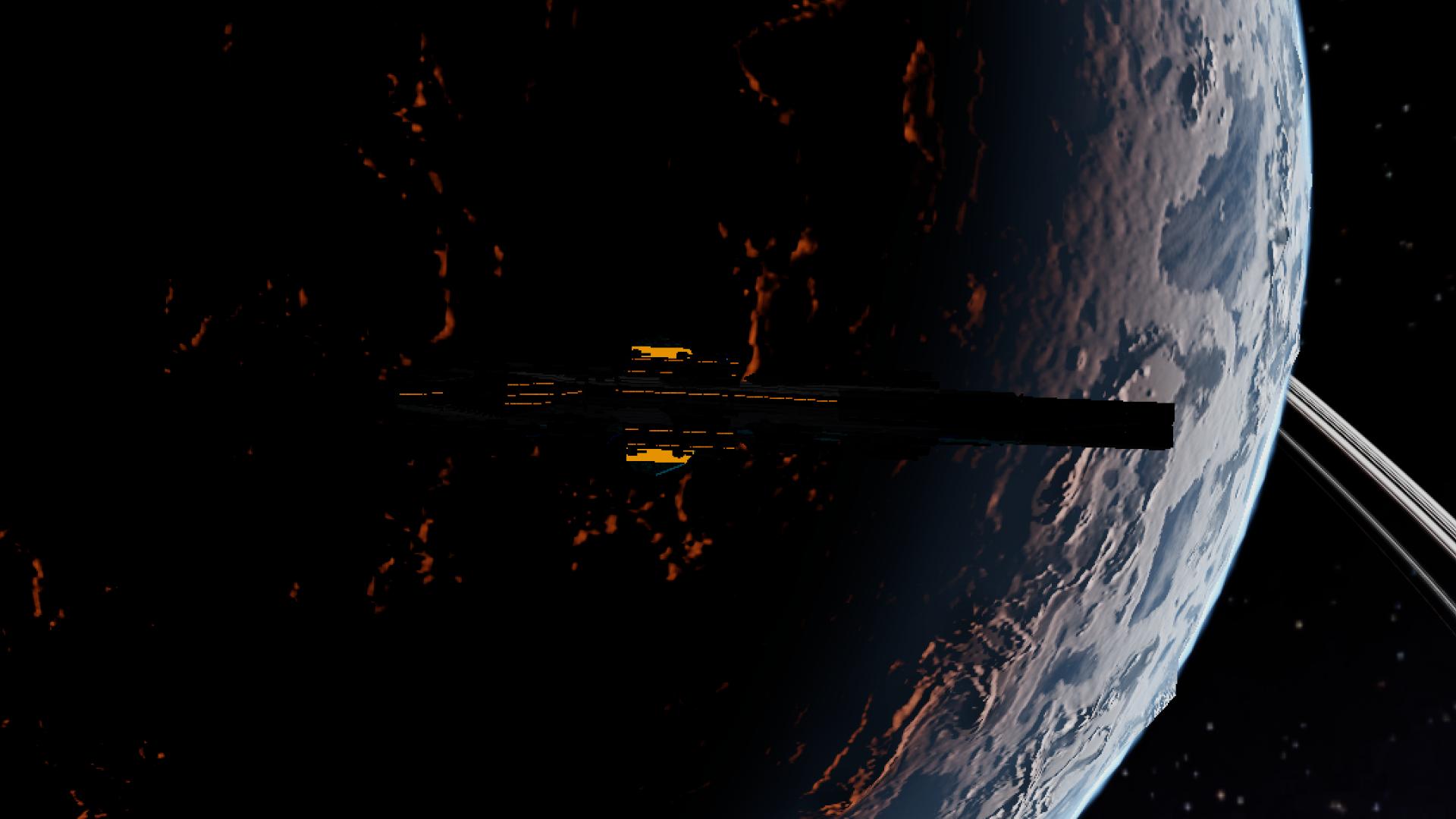 I've actually played a scenario of a battle reminiscent of this battle in a game called Modular spaceships (I do reccomend tbh), where I've orbitally bombarded a colony with an Ultaheim destroyer by using its primary railgun...albeit I did crash. Here are some ships I have built.