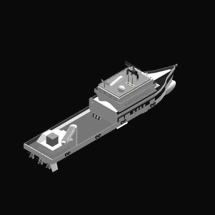Based on Jundroo’s simplerescue. I modified the boat to be faster. middle prop control is pitch up, side props are throttle. I made middle prop pitch so you can have reverse which is pitch down. To turn the crane use slider 1. Hope you like it.