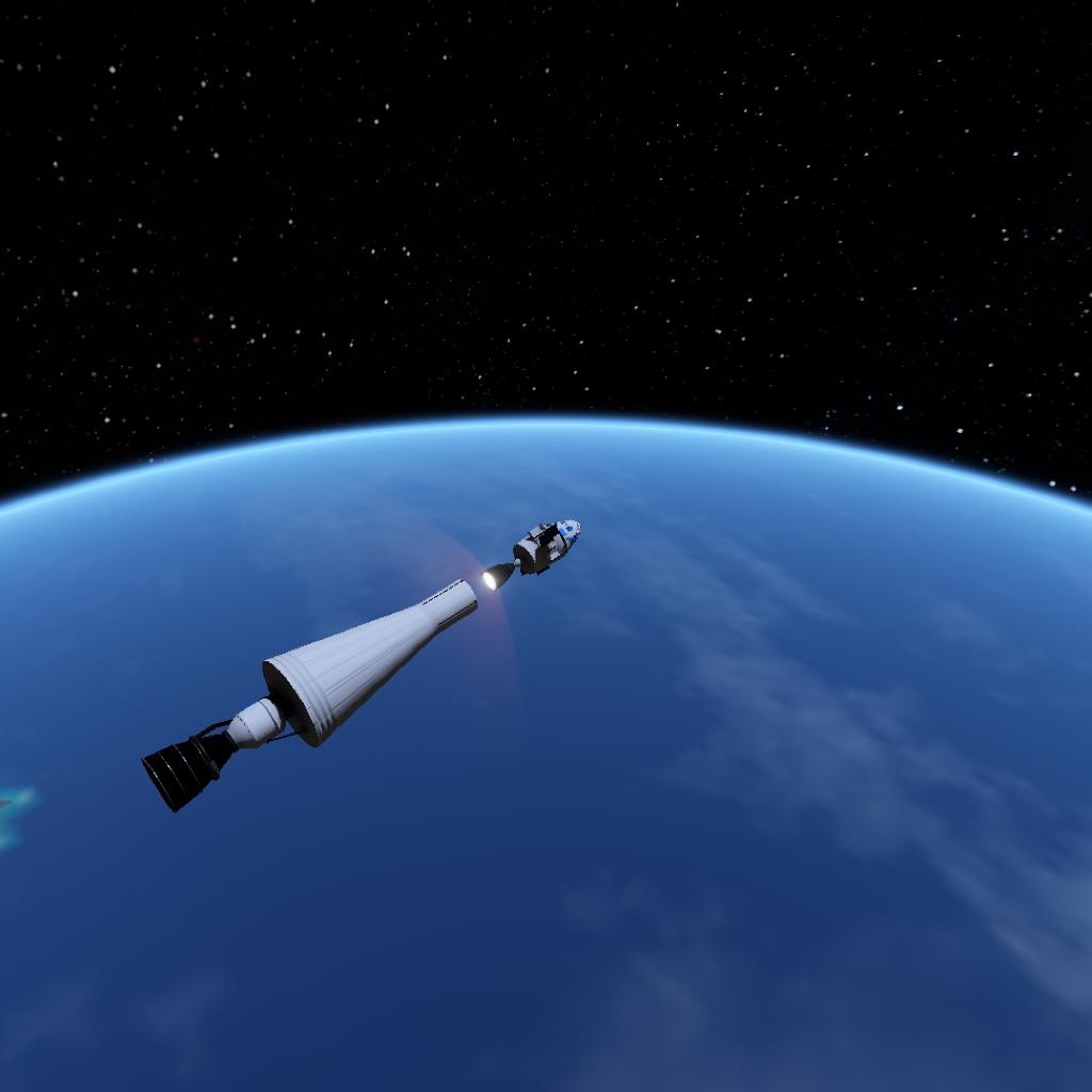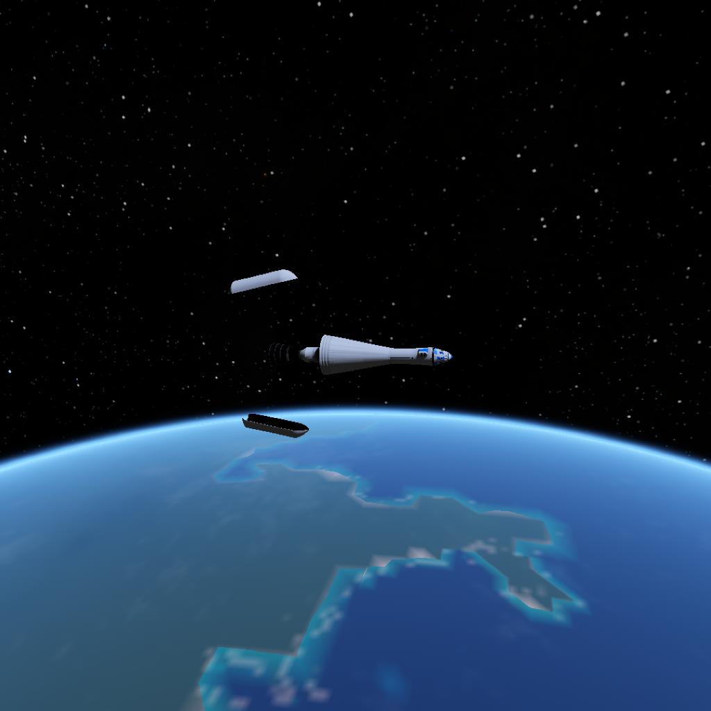 This is just a very simple rocket that has been sitting in my files untouched for a year. It contains 2 fuel types that cannot be selected normally (you could also call them illegal fuel types); they can only be selected with the hidden properties. The bottom stage is penthrite and the top stage is jetpack, and the spacecraft is kerolox. To get it, select a fuel tank, go to the tinker panel and then the hidden properties, then go to FuelTank, and then change “fuelType” to “PETN” for penthrite and “Jetpack” for jetpack. It can get into LDO, and it doesn’t have any more delta-v for anything else really. The spacecraft can hold 1 drood and 1 tourist.