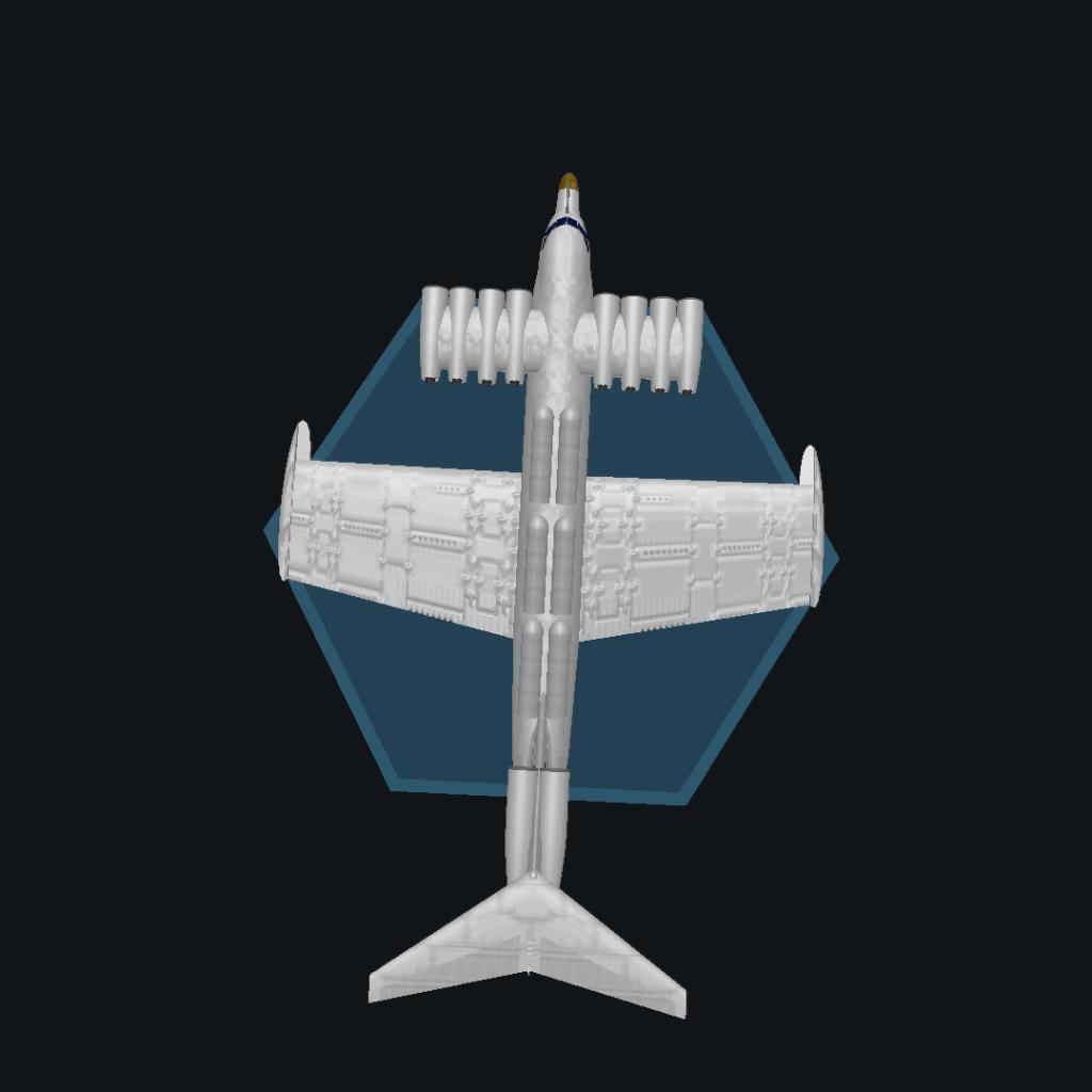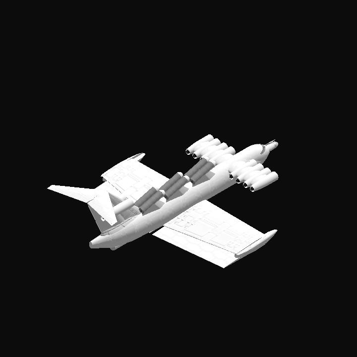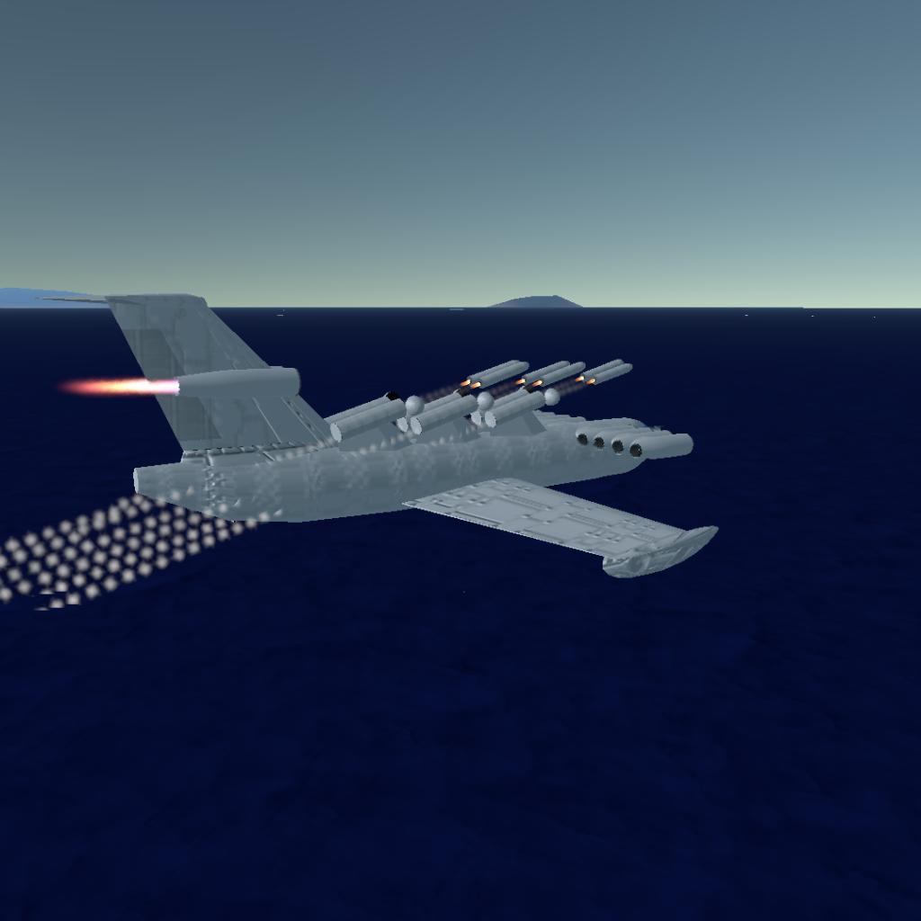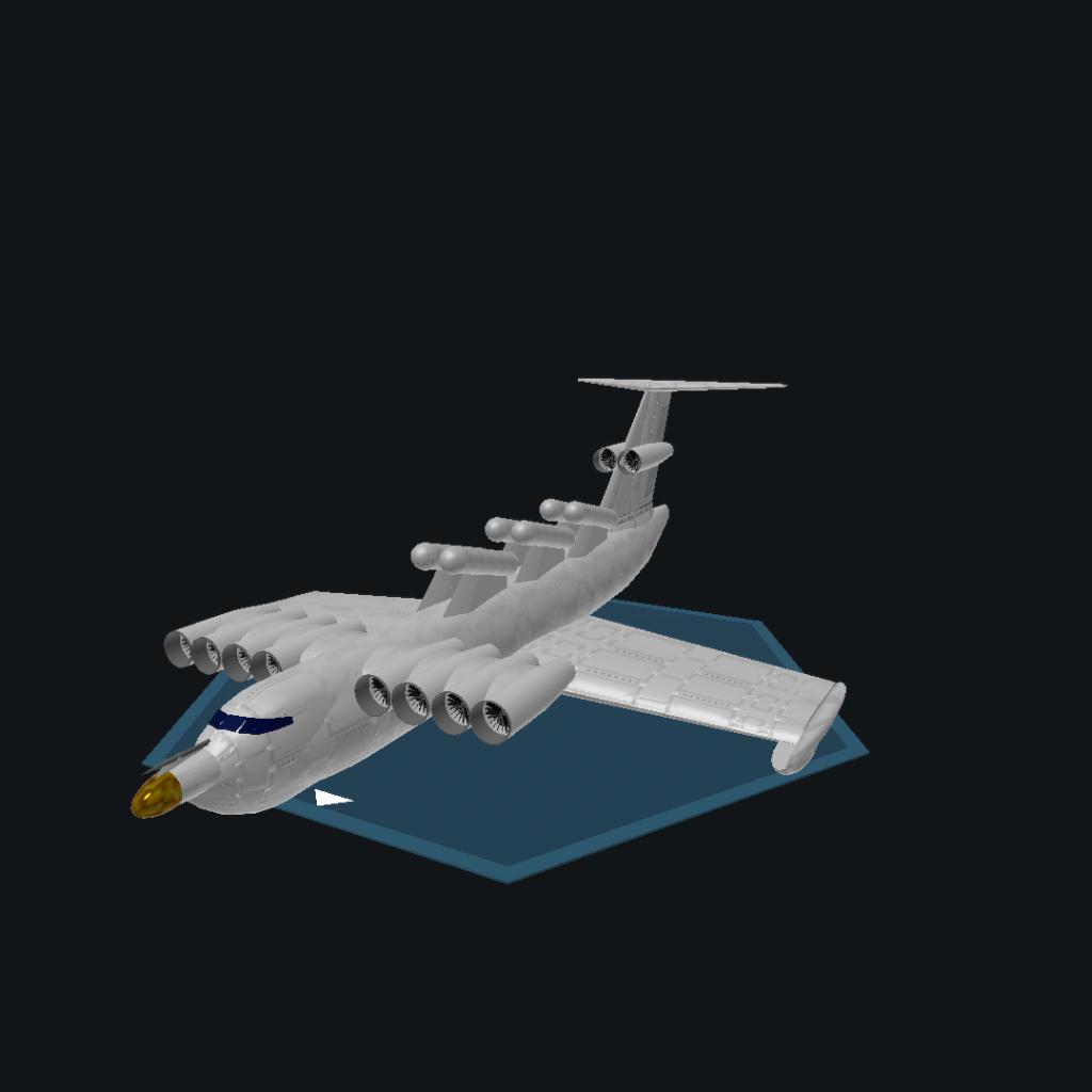 The Ekranoplan has a huge, flat, wing-like body, with a length of 73.8 meters (242 ft 2 in) and a height of 19.2 meters (63 ft)(in real life, but on JNO, its different). It's powered by 10 Kuznetsov NK-87 turbofans, 8 at the front and 2 at the rear. These engines provide the thrust needed to get it moving and keep it "flying" above water.