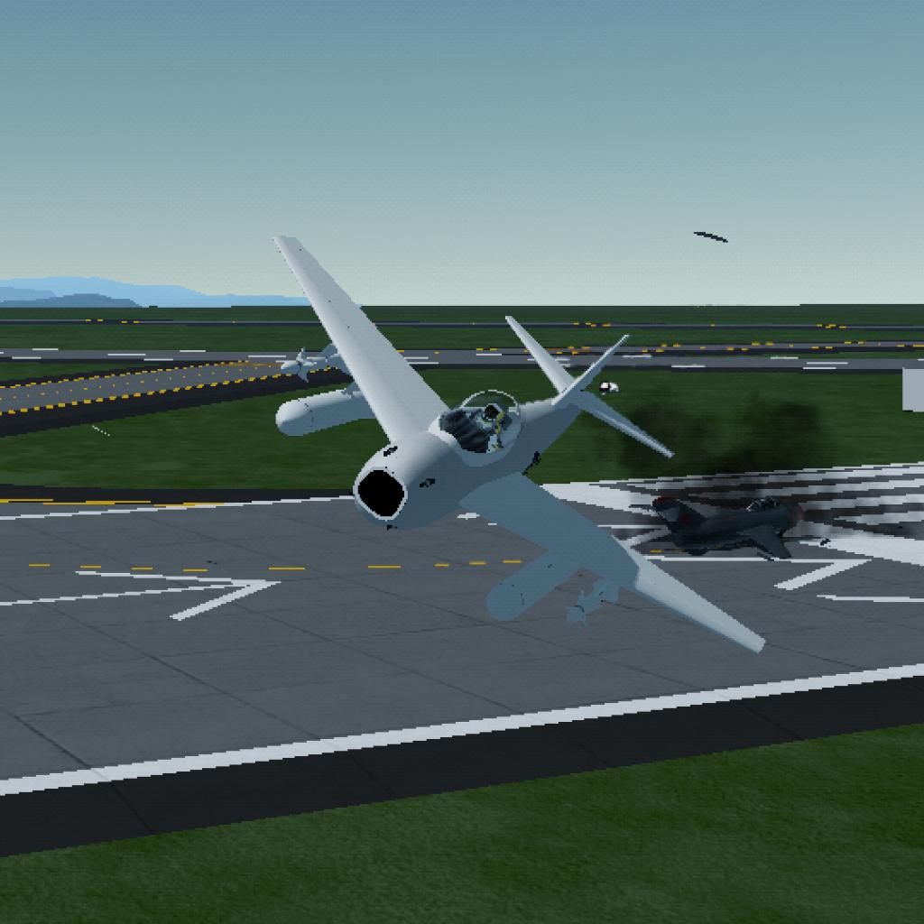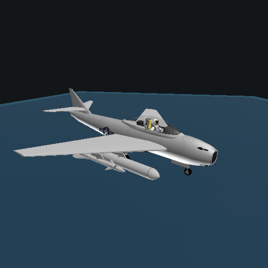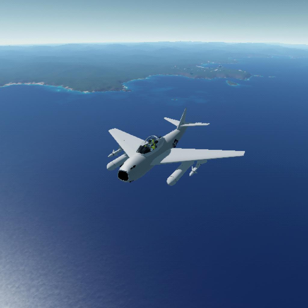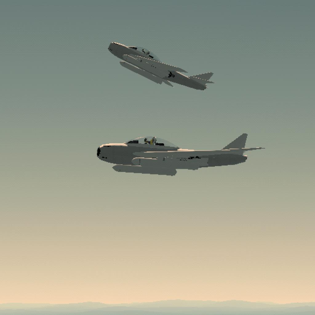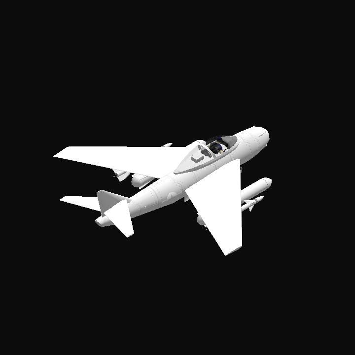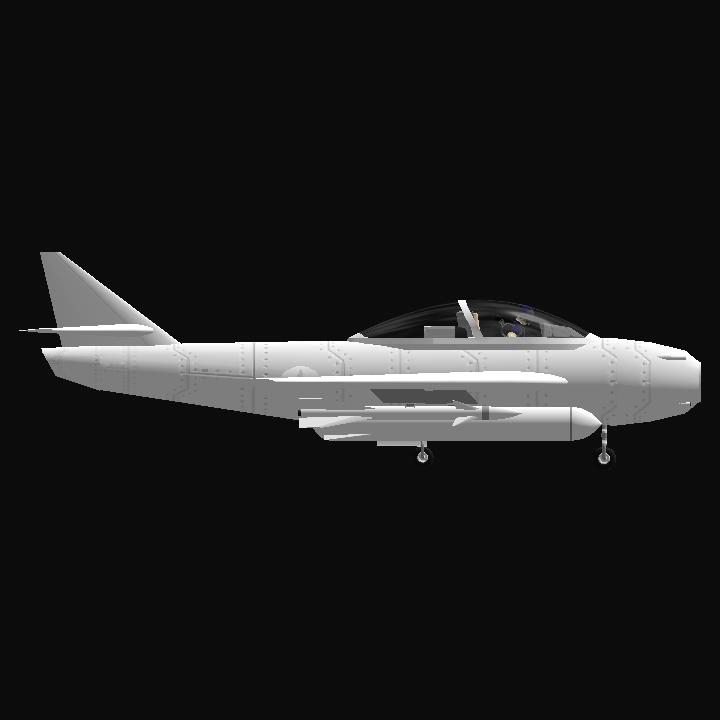 The F-1 Simple Sabre is a 1950's era style light jet, based on the combined designs of the F-86 Sabre and Lim-5p, with enhancements and extra modifications to represent Alpha Space Technologies' decades old commitment to performance, innovation, and excellence! Featuring 4x 27mm autocannons, and up to 4 modern missiles (2 with default loadout), as well as a user friendly primary flight display, and excellent roll rate, this jet is very user friendly. It excels at high speed dogfights, as well as an affordable training platform, and is best used by the numbers as they are very cheap compared to traditional, larger afterburning supersonic jets. This jet is more of a hybrid. It excels at subsonic speeds, and can go supersonic when necessary
