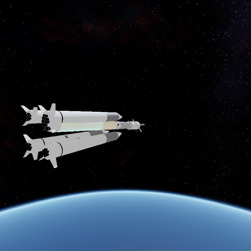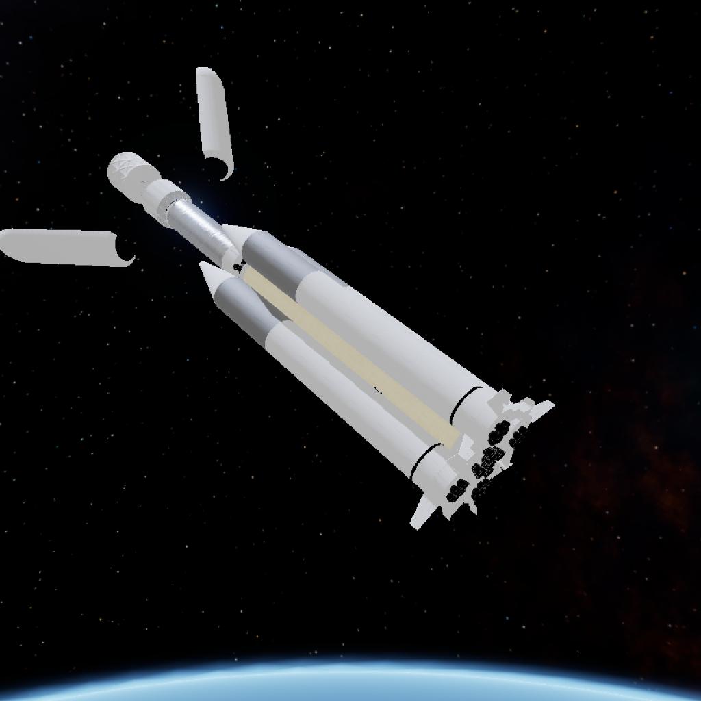 For those times when you need to loft heavy payloads to distant worlds, the Polaris III super-heavy-lift rocket does the job! With a Ares V core and nuclear upper stage supplemented by 4 methane boosters, it can get the job done in style! With a 14m wide fairing, the largest of crafts can be launched to distant worlds, it's all up to you! By default it has a Orion spacecraft and space habitat with solar panels by default. Enjoy!