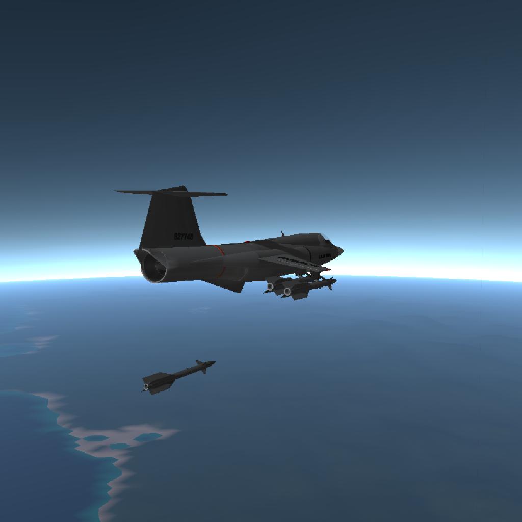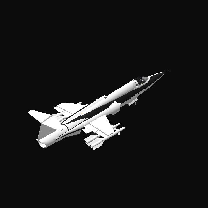 The F-104BI-A Is shaped more like a rocket than a conventional plane, having short wings and a single powerful jet engine[ The BE-85] pushing It to Speeds exceeding mach 2.2 even at lower altitudes. The F-104BI-A Is armed with cutting edge advanced missiles developed by AlphaSpaceTechnologies to go hand to hand with BeaconIndustries jets. This means that the jet can use any of the weapons developed by AlphaSpaceTechnologies.The jet Is also armed with a nose radar that can be accessed or replaced for maintainance by opening the front of the nose. This jet has a range in exceed of 900km and takes off at 100m/s. When landing a drogue chute wich activates at 160m/s can be enabled to slow yourself down or you can rely on the good old brakes. This is a day light fighter but It has navigation lights in case of need.