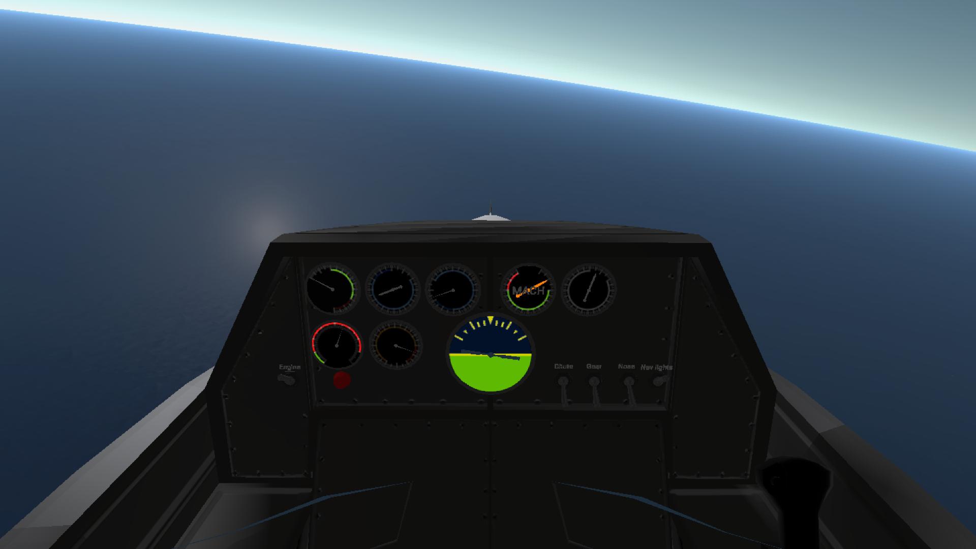 It has a fully functional cockpit with Altimeter,roll indicator,vertical speed indicator, airspeed indicator,mach indicator, altimeter, navball,throttle,fuel level indicator and a warning light for 15% fuel left. Some buttons are also present.
