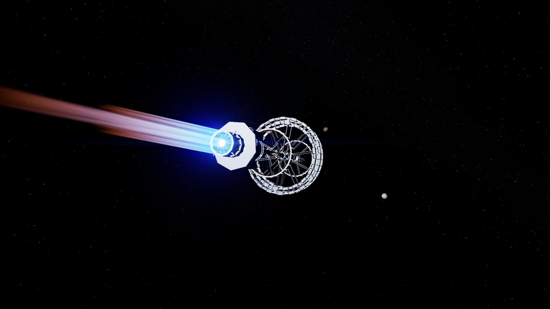A huge interstellar passenger ship, equipped with an energy shield to defend against meteorites.