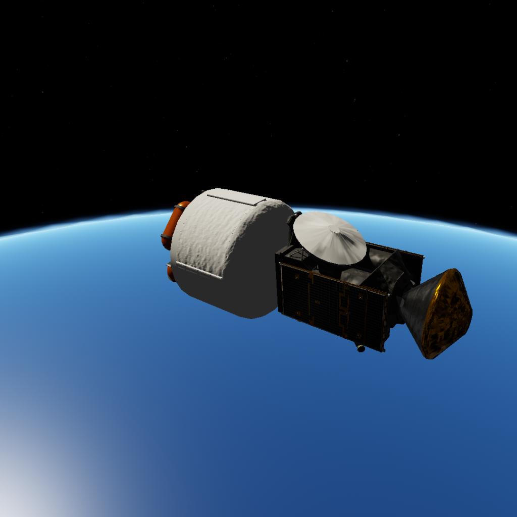 I built a fictional rocket, the Boson M, and put on top of it the real orbiter.