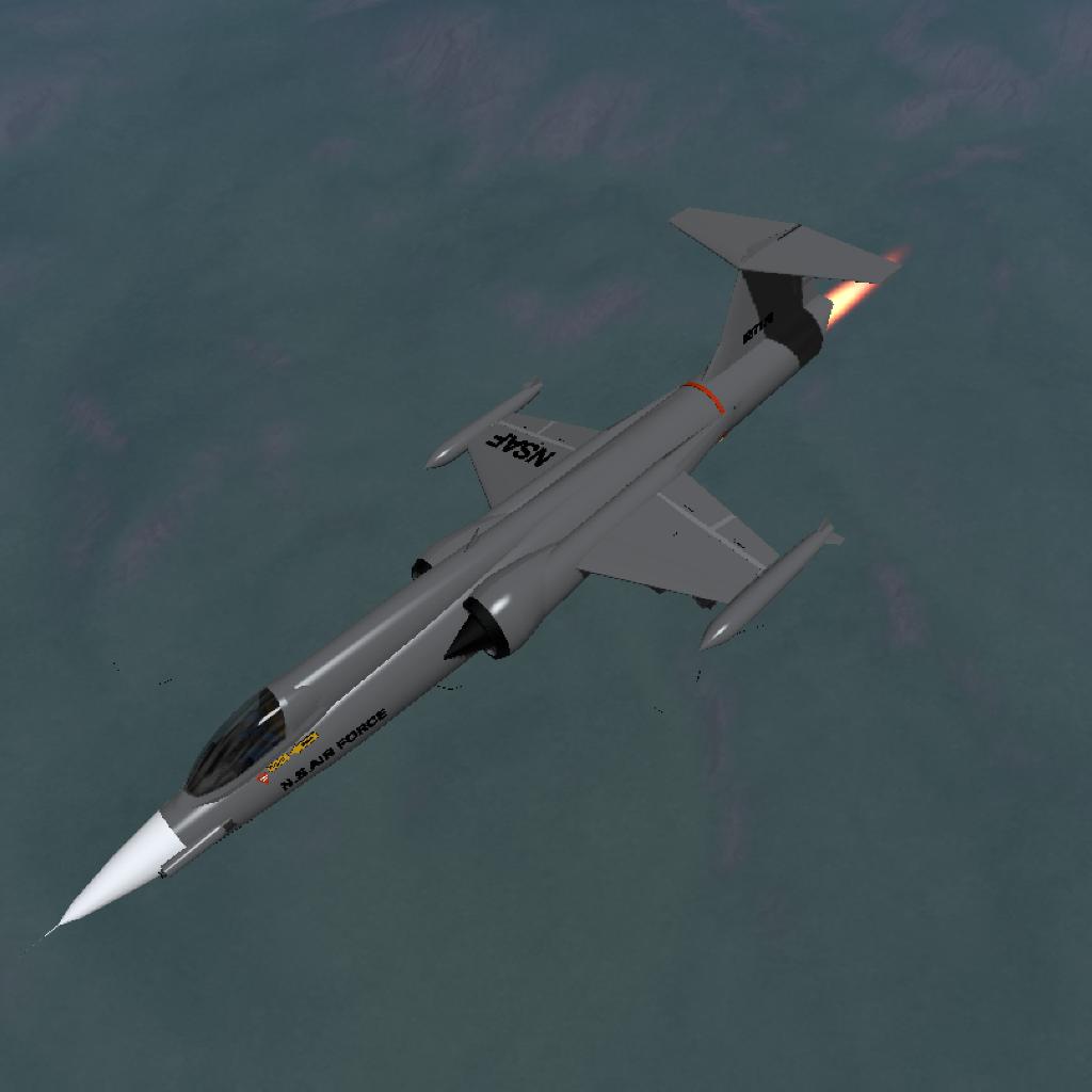 The aircraft also comes fitted with an M161 Vulcan 20mm Rotary cannon mounted on the side of the nose and capable of shredding any aircraft or ground vehicle in it's way thanks to its large ammount of ammo and fast fire rate. The engines of the original F-104 so the GE-85 was swapped for it's enhanced version called GE-85-B providing more thrust and inhanced efficiency. The avionics have received another minor improvement as the pitch Is now stronger and the tail Is slightly larger for better control.