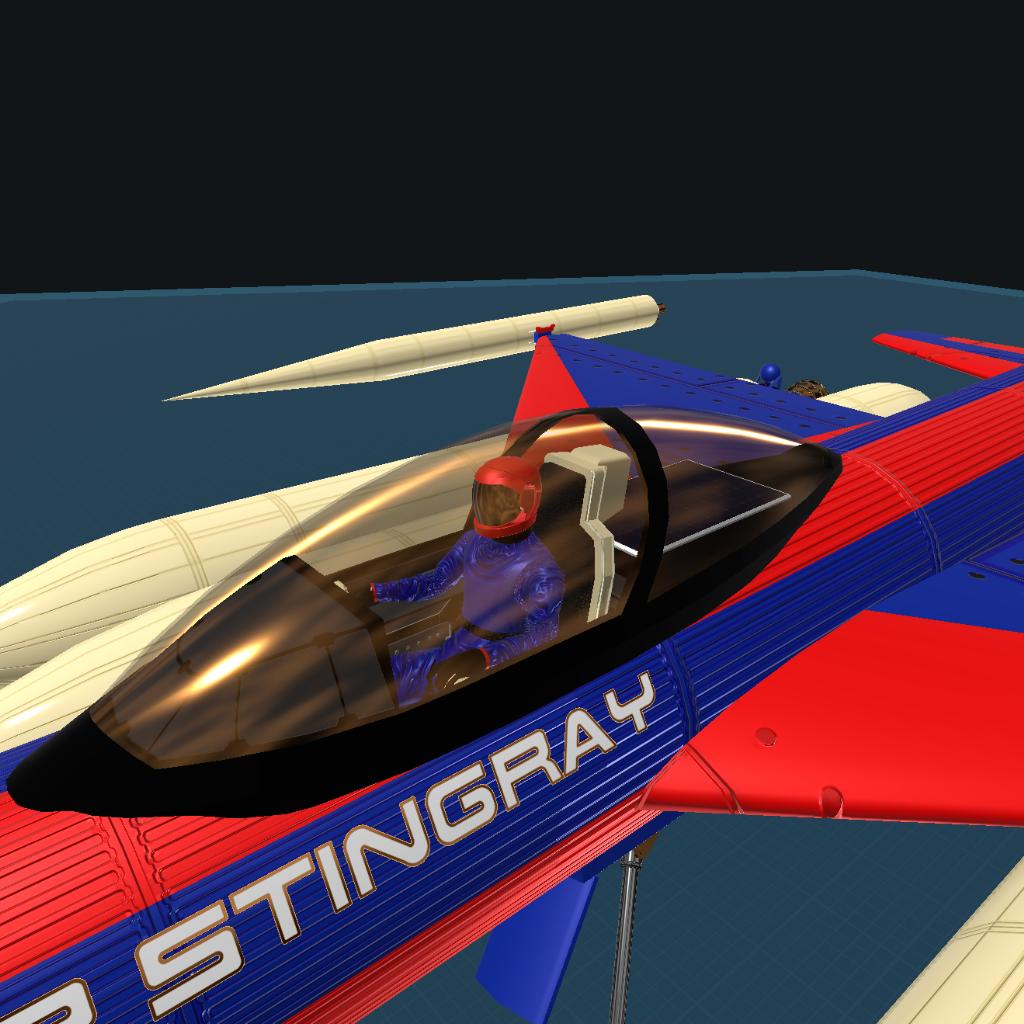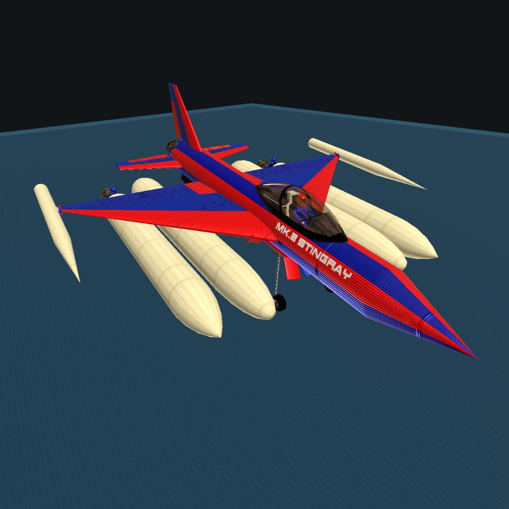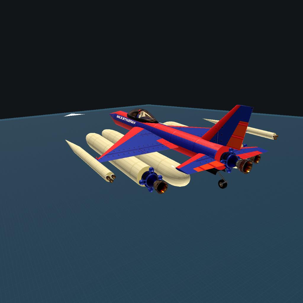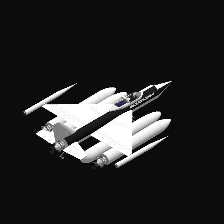 This is the Stingray Mk.2 it functions just like the Mk.1 but is manned and also it is recommended to use the secondary runway you will need speed and to go off the cliff for lift off. It is a rocket powered mulitstage aircraft!