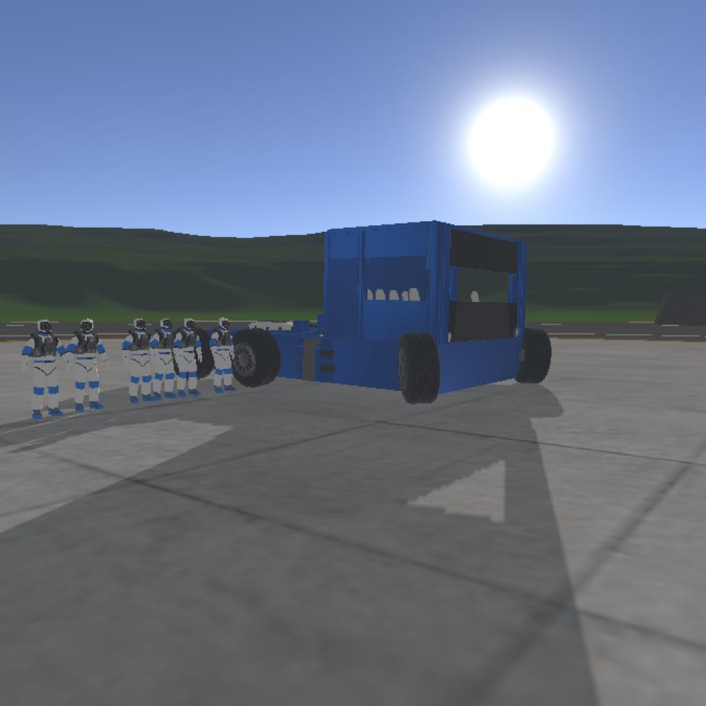 I built a semi to carry loads around Kerbin or Droo and it is also able to be used as a Crew transport truck to bring astronauts to a d from the launch pad and runways. (I have to make it be able to have reverse)