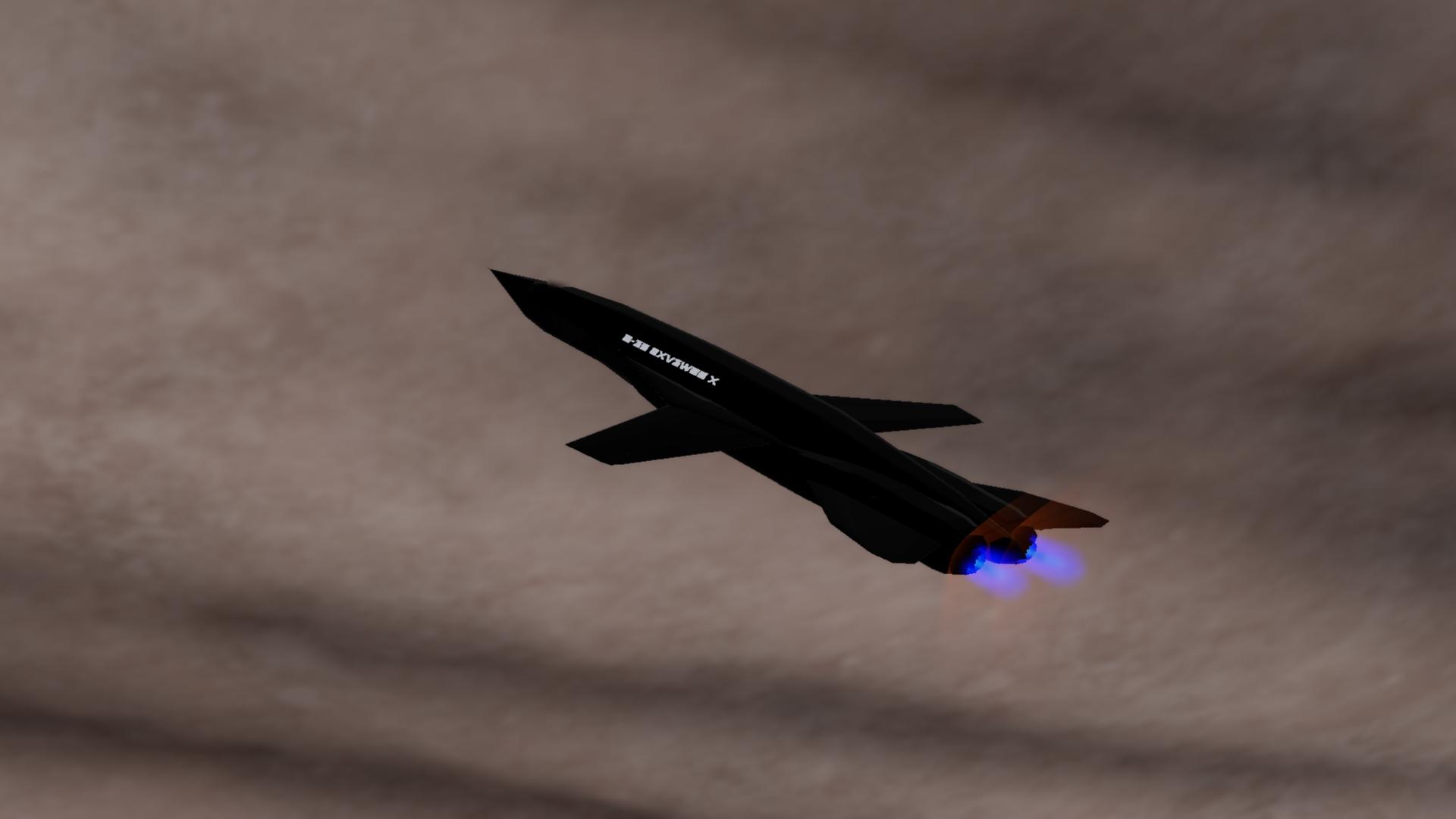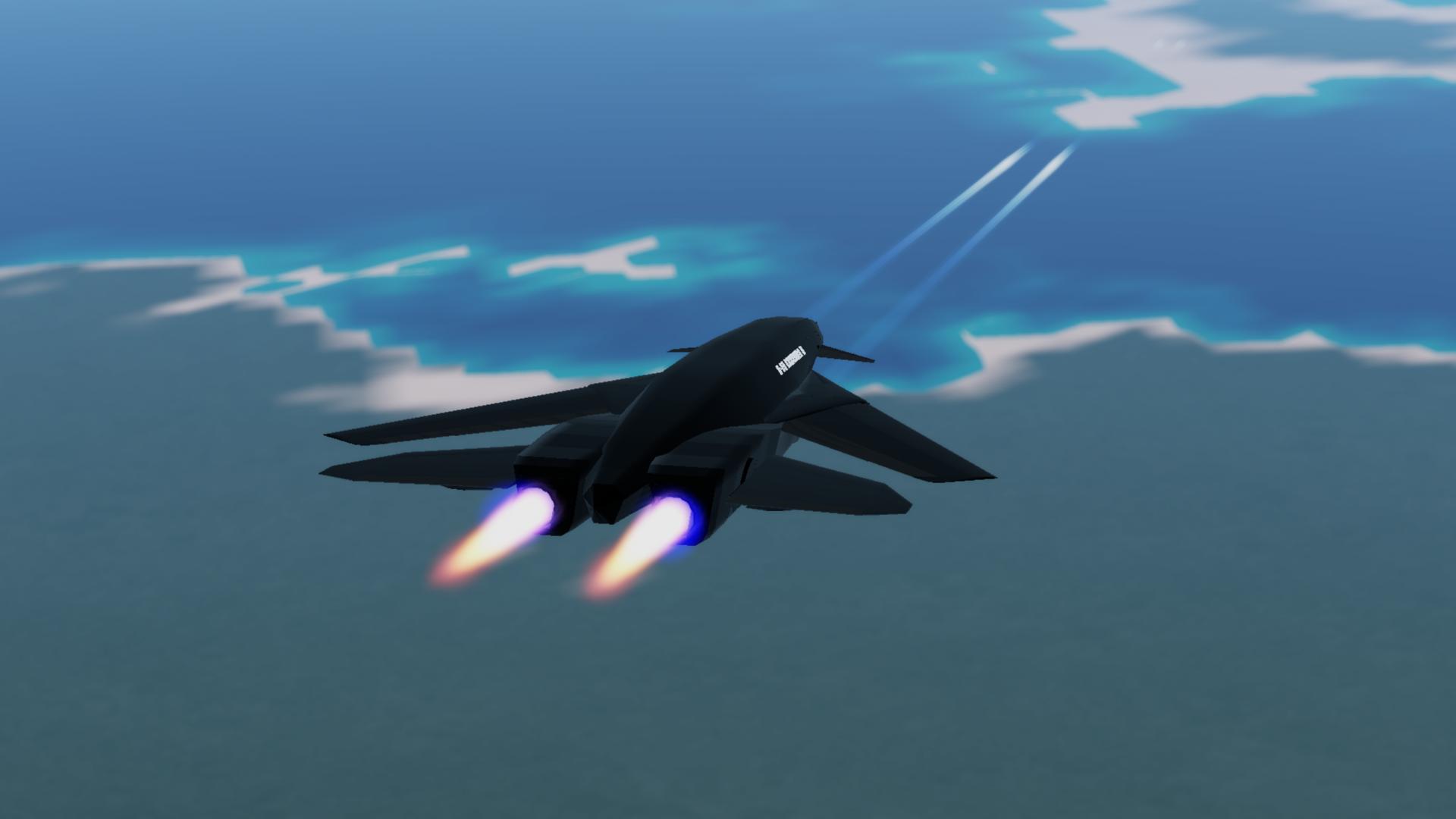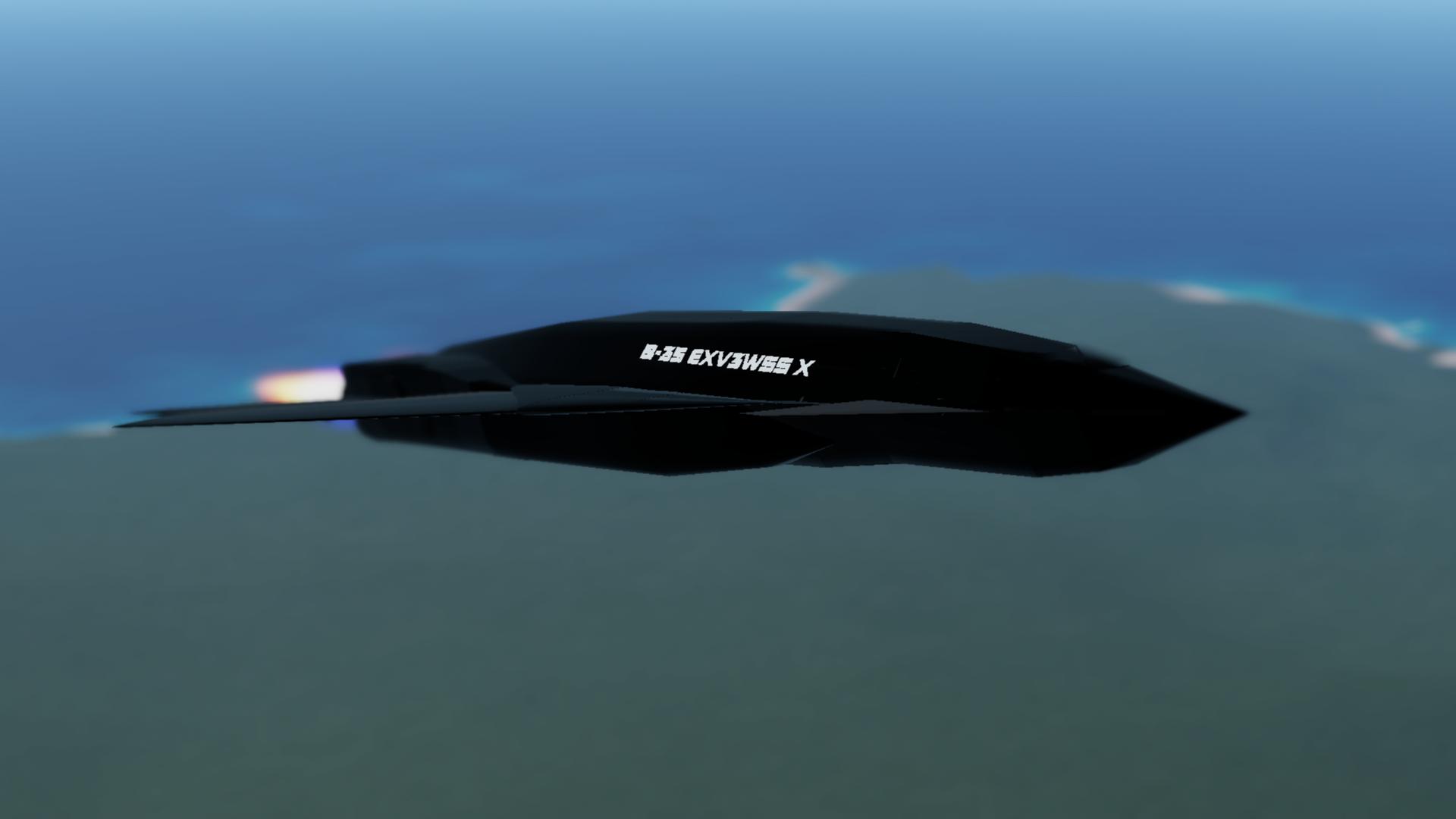This bomber combines stealth,speed,firepower, endurance,and manuverability together, it's max speed is mach 50, can go to space and return as shown in image (when useing VTOL mode to slow down), Thanks to the stealth coating used, it van go undected into enemy airspace, It has 2 guilded missle, 2 dropped nukes (AGMs) and lazers for dogfights and CAS, itcan last an infinity amount flying thanks to the special designed engines and rocket engines.