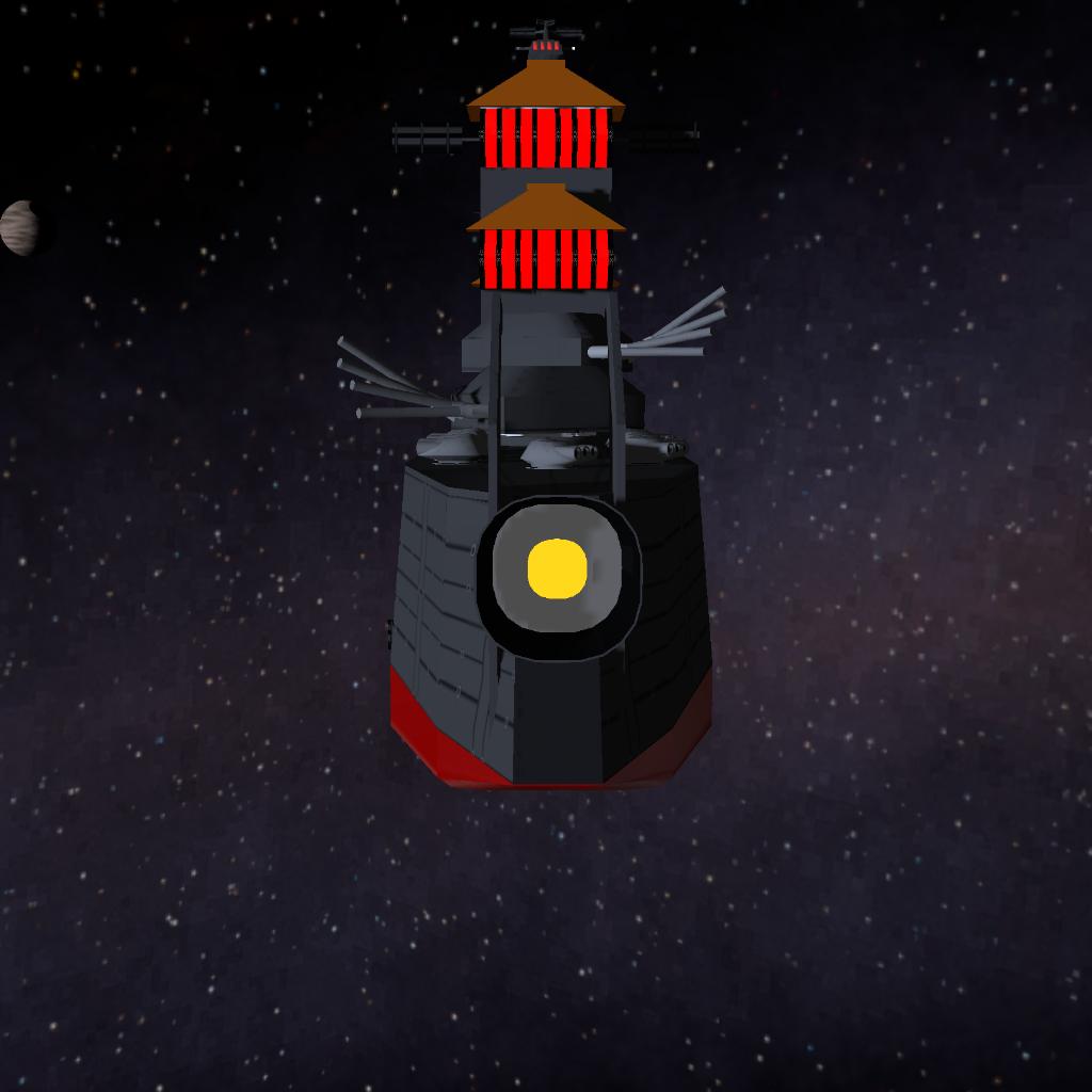 Gambar menampilkan model kapal luar angkasa yang terinspirasi dari kapal tempur kelas 宇宙戦艦ヤマト