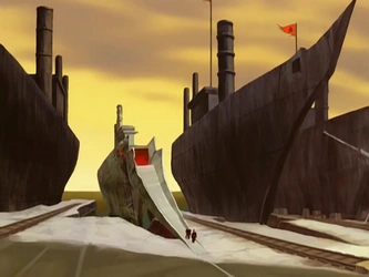 Another version of the Fire Nation cruiser, the Southern Raiders frigate, came into use during the later raids of the South Pole and was still active in 100 AG.[5]