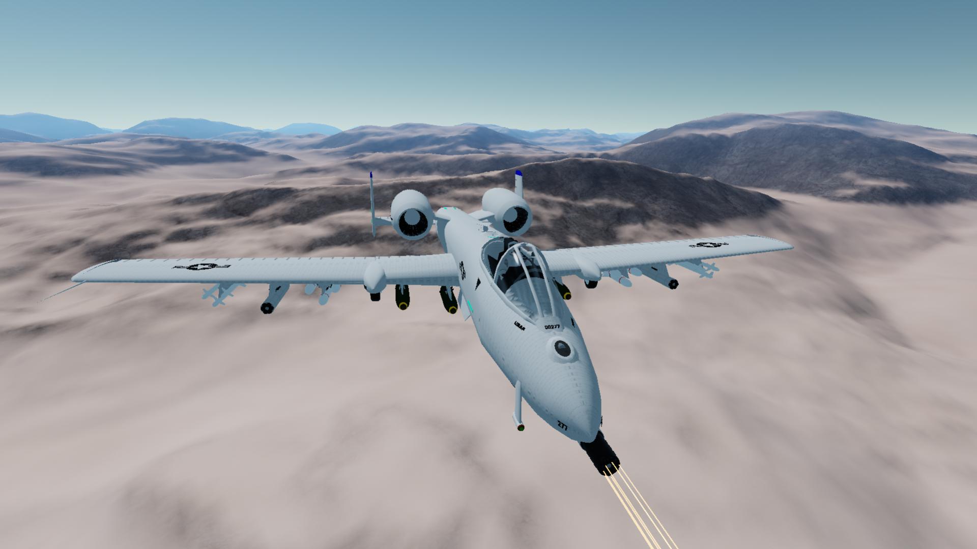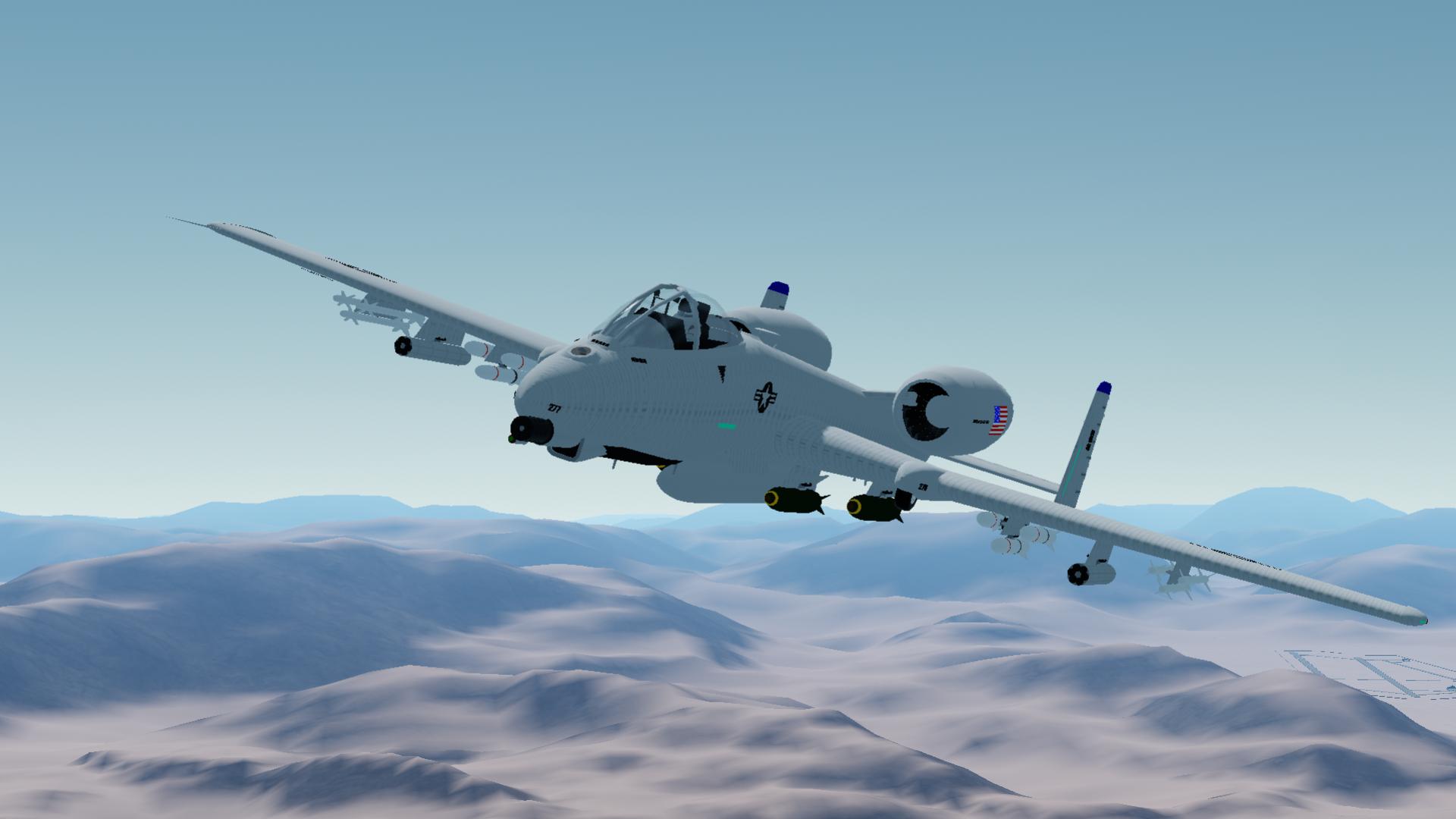 I was requested to build an A-10, so here we are with this beauty. I couldn't assign all the immense amount of weapons to action groups so I will explain how to fly the air craft. The weapons that are action grouped are the missles. The bombs along with detaching the missle pods and fuel tank are manual due to limits on how much action groups can be used on mobile versions of the game. The missle pods are activated by staging them. The legendary GAU-8/A Avenger gun is an actiong group along with basic flight systems. Also slider 1 activates the flaps for more lift. Another detail of this modern version of the craft is that it is faster then the origninal which is fine with me since its made with the mindset of it the aircraft went back into modern production along with the actual A-10c models. This also means the cockpit is all modern. The air craft also has functioning airbreaks and reverse thrust. Over all It is my best craft yet and especially my best recreation. I eventually plan on recreating other crafts I've already done and some I haven't. The only one I'm still fine with is my F-16 From before. I hope this craft is alot of fun for you despite it not being perfect like the landing gear retract. Please keep in mind all my crafts are made on mobile and I don't have access to mods nor the knowledge to make vizzy help me in anyway. Please enjoy my A-10c and remember to have fun! :)