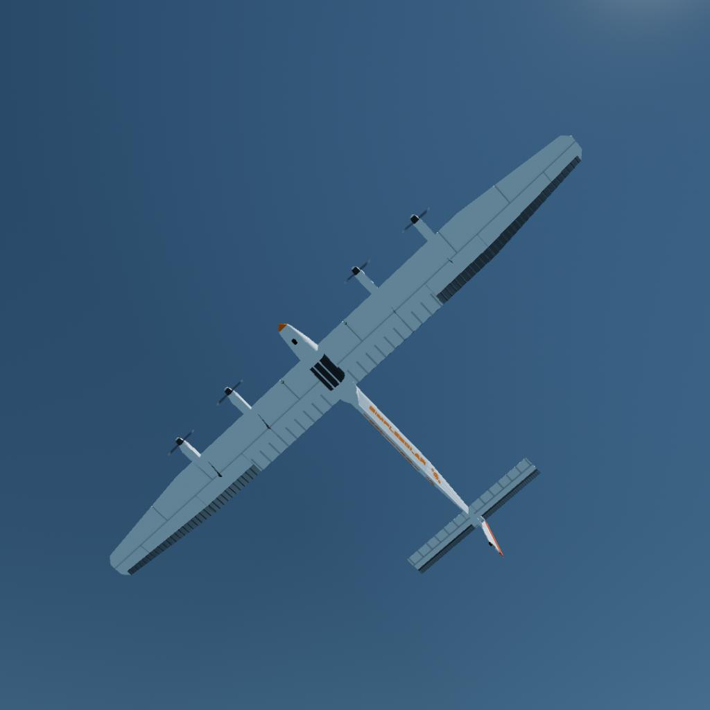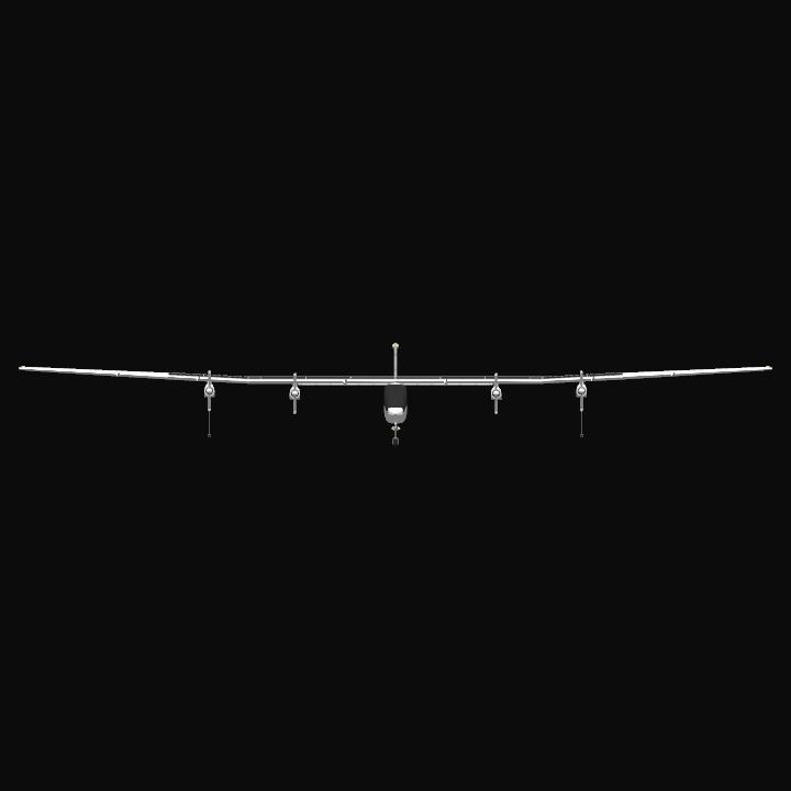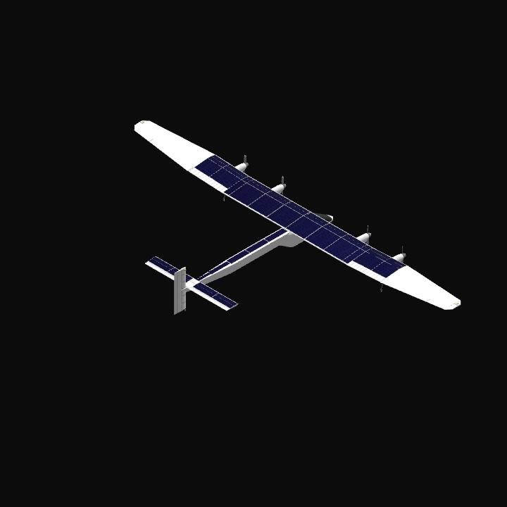 This solar-powered aircraft is modeled after the real-life "Solar Impulse 2," with a similar weight (2.2 tons). However, its wingspan is slightly smaller, resulting in a faster takeoff speed and a higher maximum level flight speed compared to the Solar Impulse 2 (30 m/s and 60 m/s, respectively).