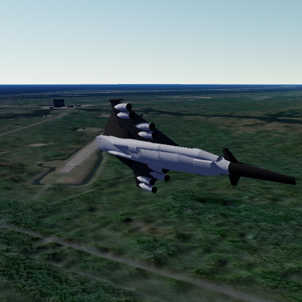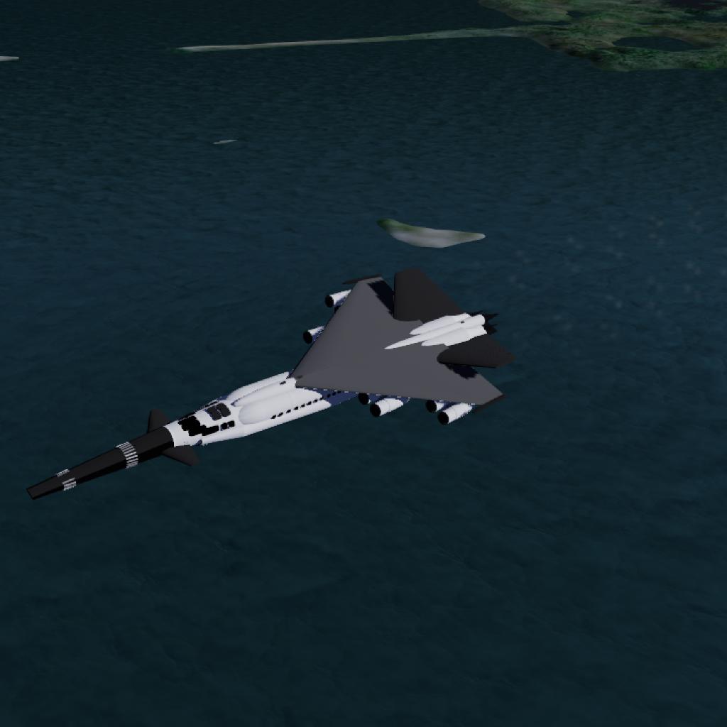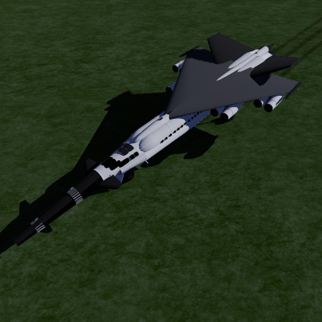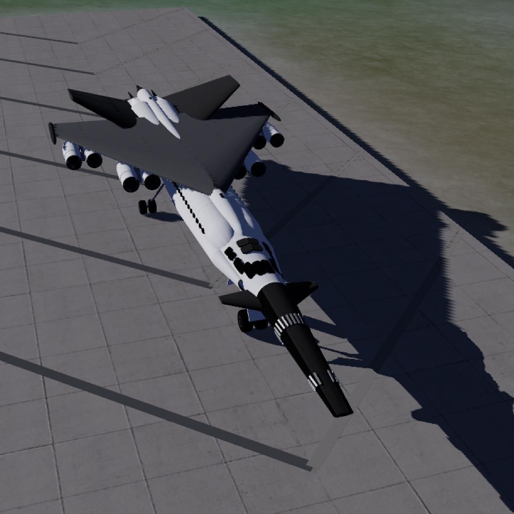 The TVTA-1 (Target Velocity Test Article-1) is the largest test vehicle ive ever made, Using a total of 8 onboard engines mounted under the wing in pods, the TVTA-1 can reach a top speed of around 400m/s.