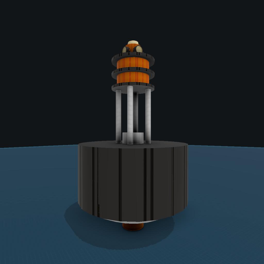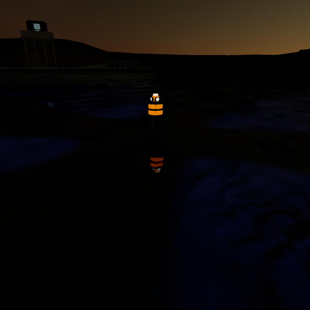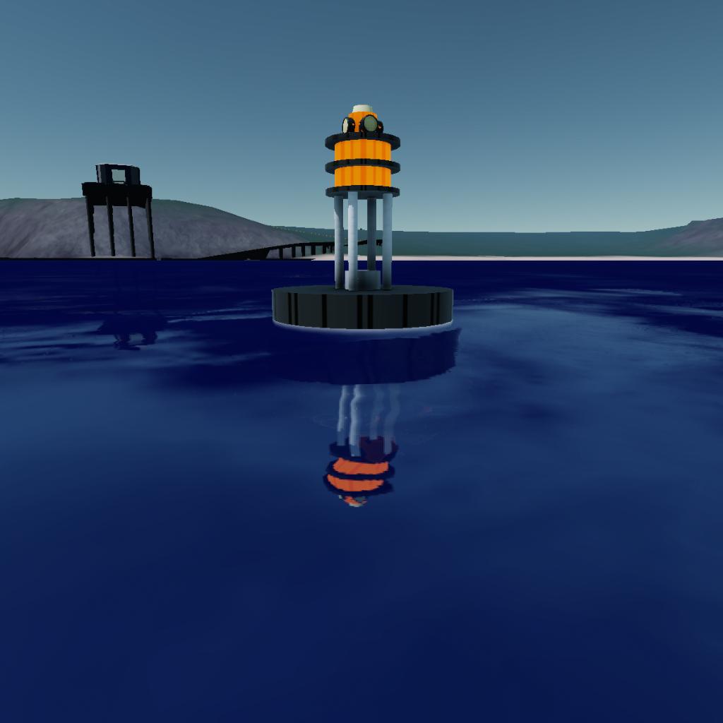 A normal sized free floating buoy with a ballast, 4 lights that reach very far, and a beacon light on the top that routinely blinks on and off every other second. It also has a glowing orange part in case the battery runs out, I guess.