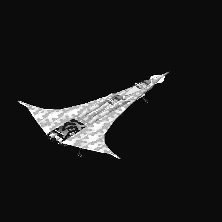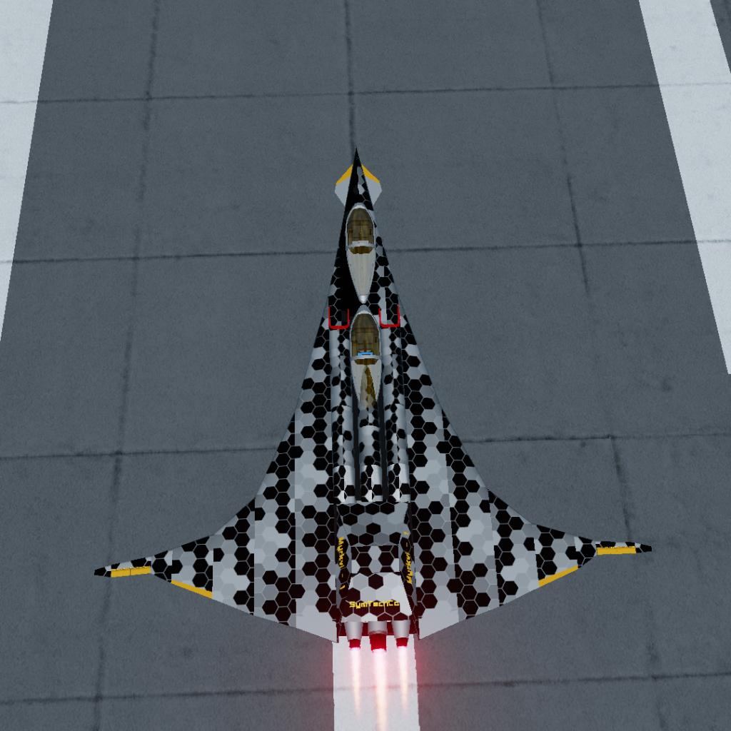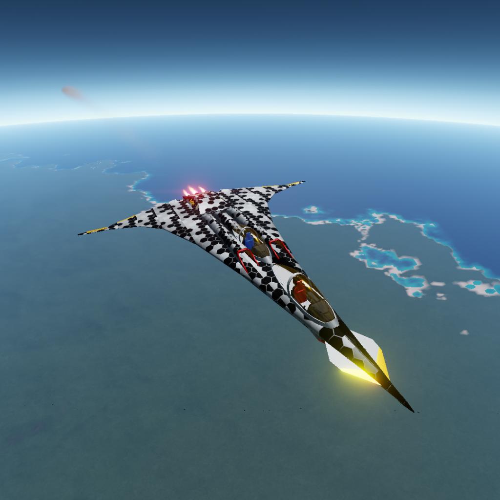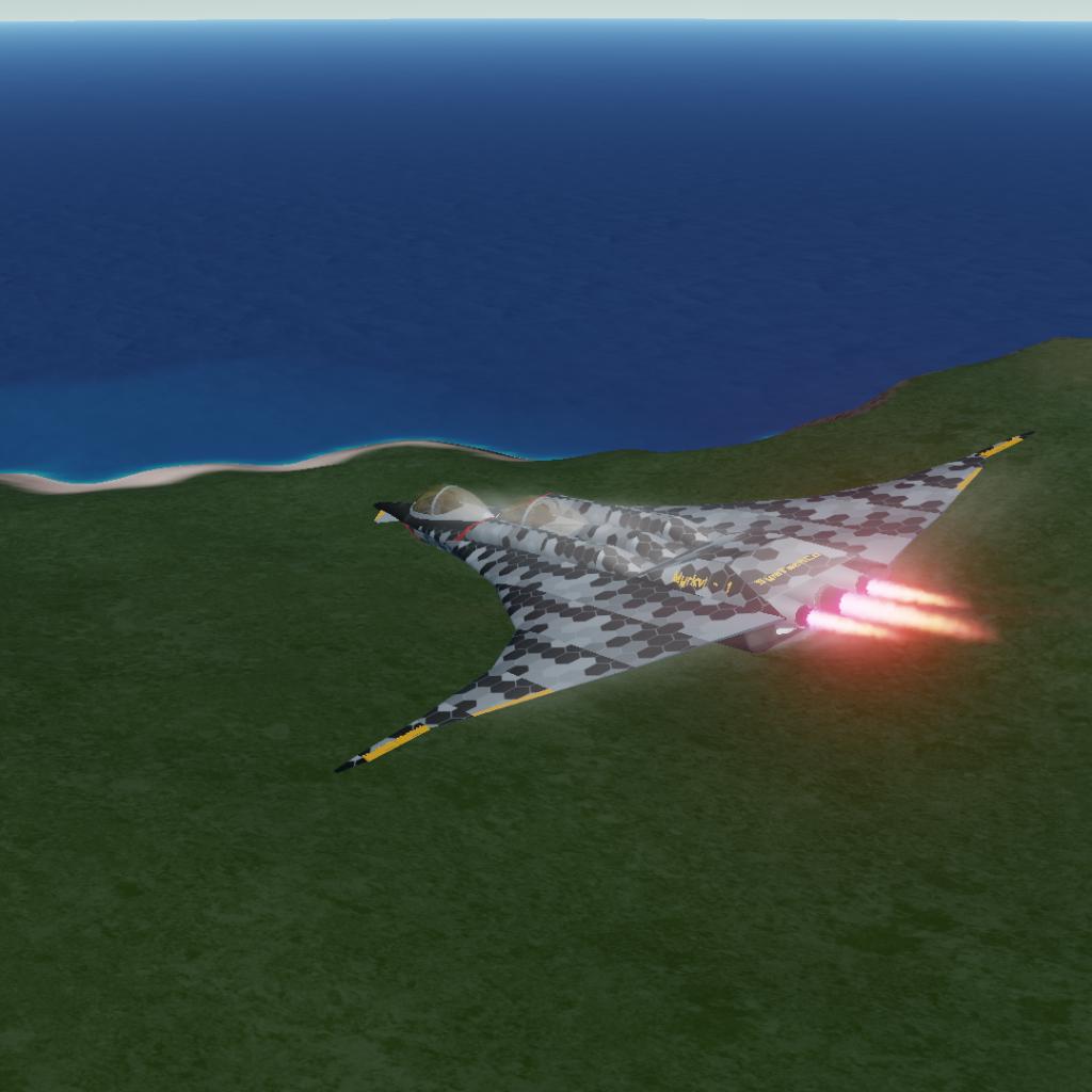 rudderless flying wing stealth jet with thrust vectoring engines and differential drag for yaw control.
