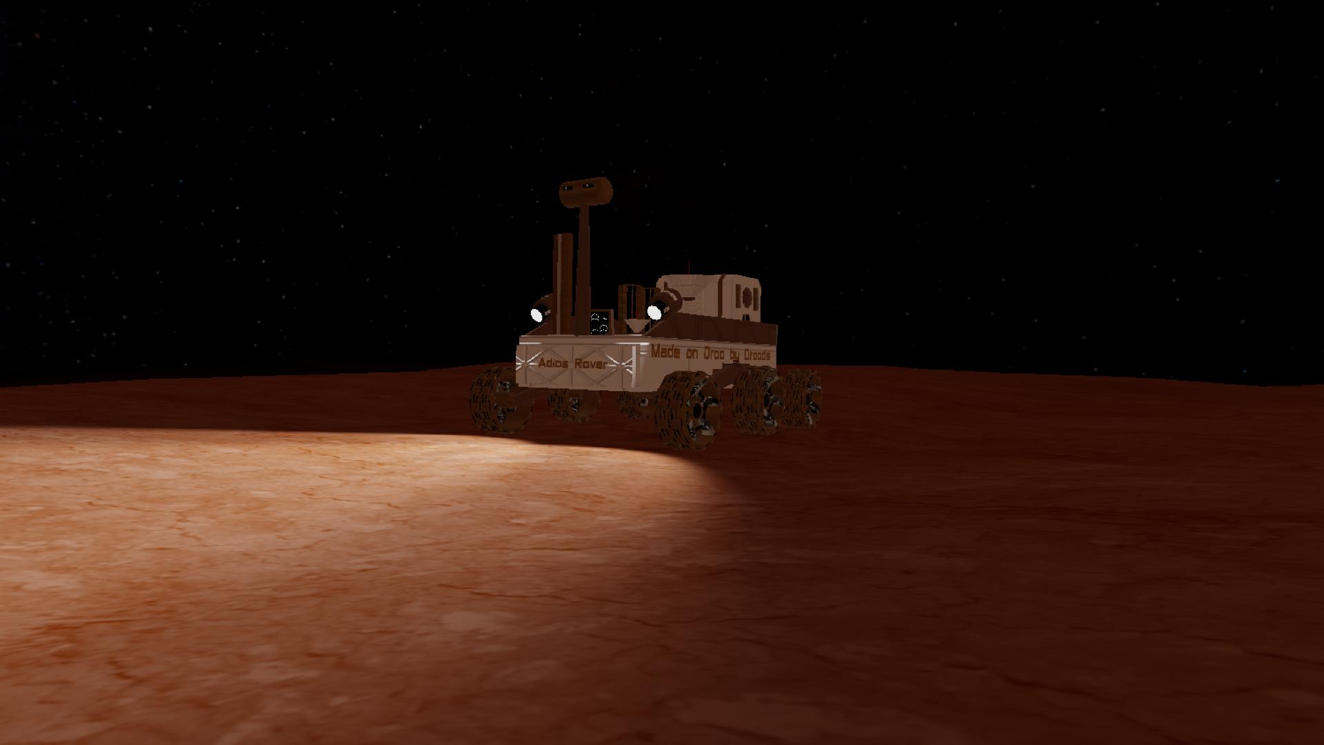 Adios Rover is a compact exploration rover developed by Horizon Aerospacee for surface missions across harsh planetary terrain. Built for reliability and mobility, Adios combines a sturdy suspension system with efficient power management, allowing it to traverse rocky landscapes, steep slopes, and distant horizons.
