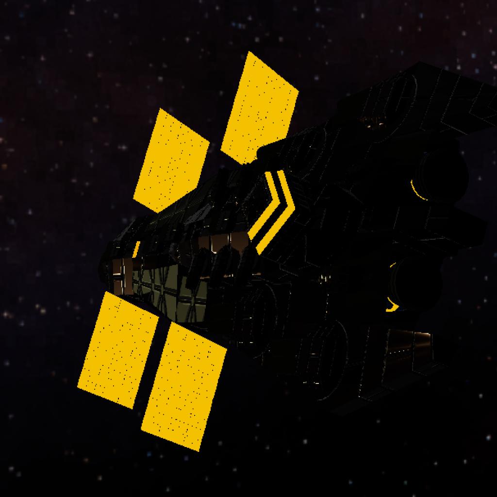 This is a variant of the octares painted in a future human factions colours, its supposed to resemble the aesthetic of my minecraft world (Lantern Lit Nether brick as I call it), due to the faction following a more geometric shape style and a preferrence of diamond shaped hulls, id say this would have been an early guard battleship to guard their capital world, so what do you guys think?