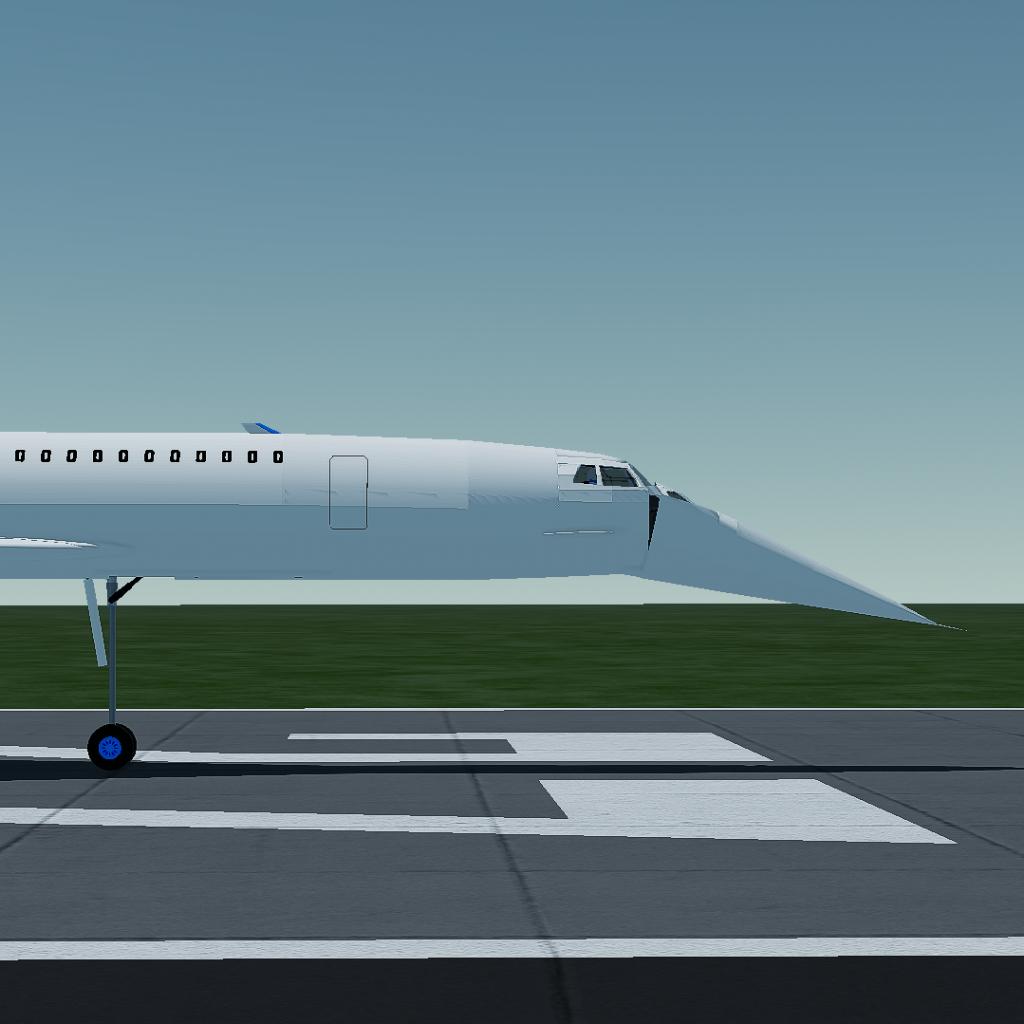 i added a custom landing gear as normal landing gears are too big, and cant be set in the shape of the real concorde, both front and rear landing gears are custom, except for the tail landing gear, i got lazy with it