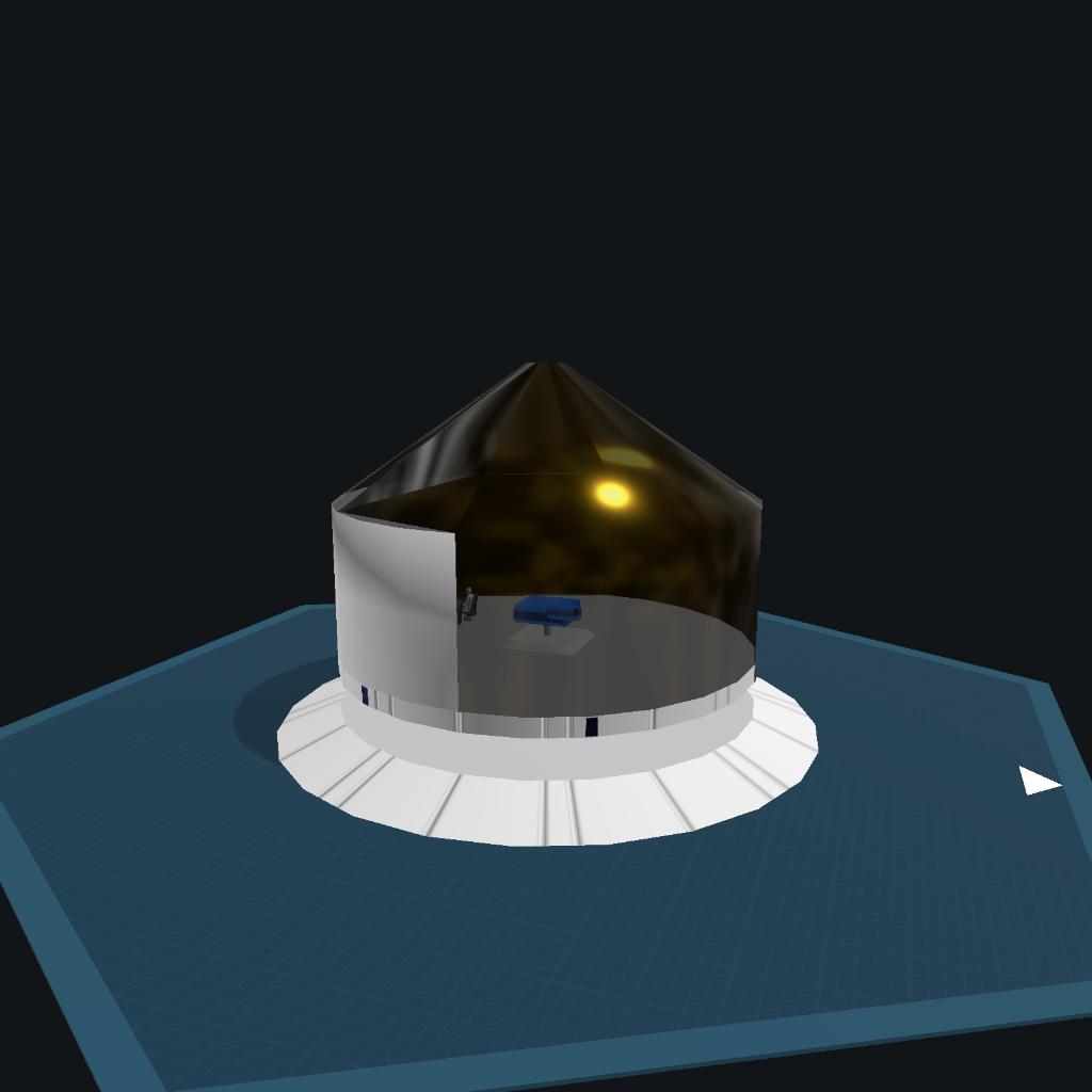 A simple Observatory. picture of Brigo is at 10% zoom. Slider one controls building spin and throttle controls camera zoom.