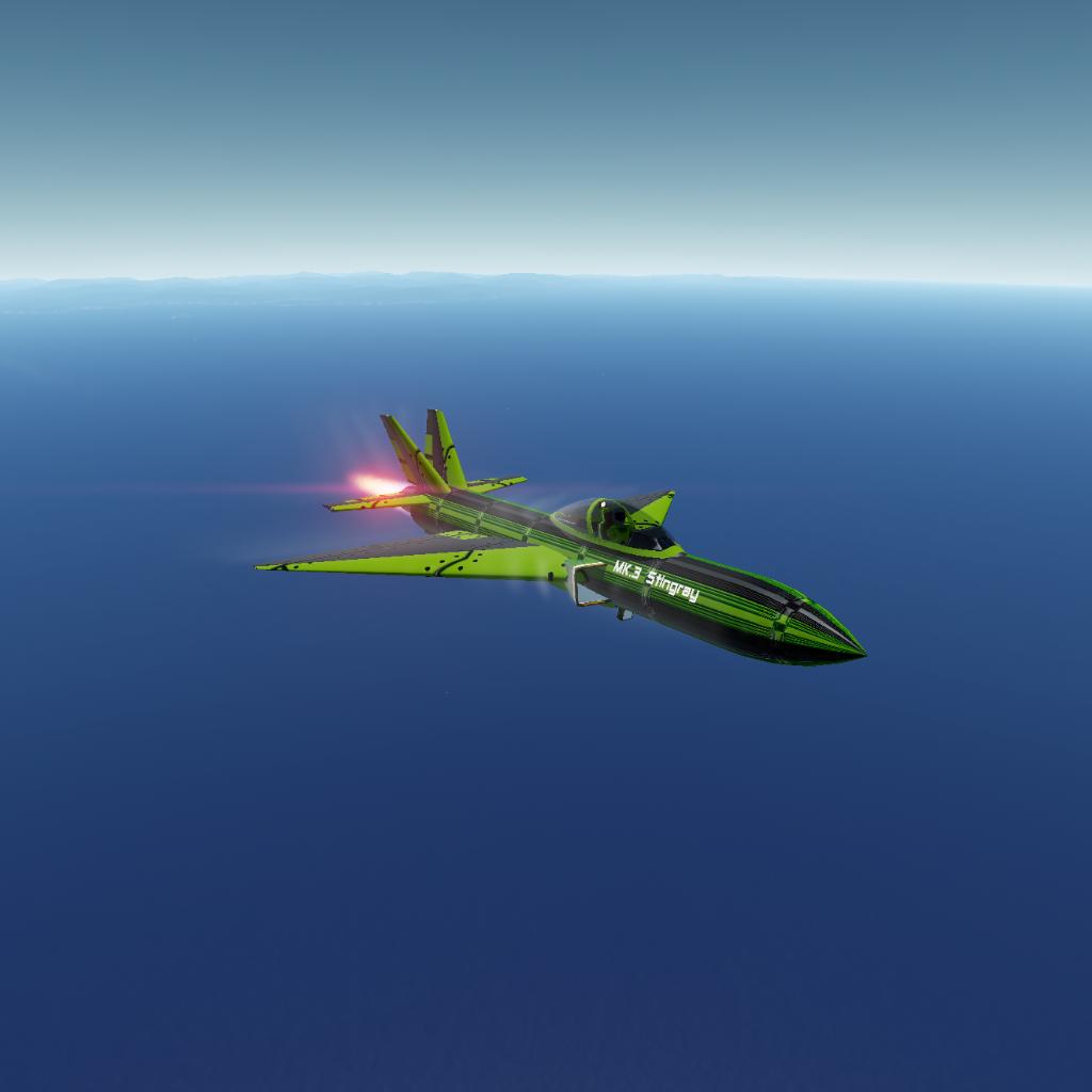 This is the all new Stingray Mk.3 from Pug Avionics! It is an all new jet and it not rocket powered like the previous models. Not only that it is significantly faster! This jet is so fast it can go over 1,900mph which is faster than the SR-71 Blackbird! It can go to the edge of space with ease and travel across droo with extreame speed and efficency! Order your Stingray Mk.3 today! Also includes emergency parachute features.